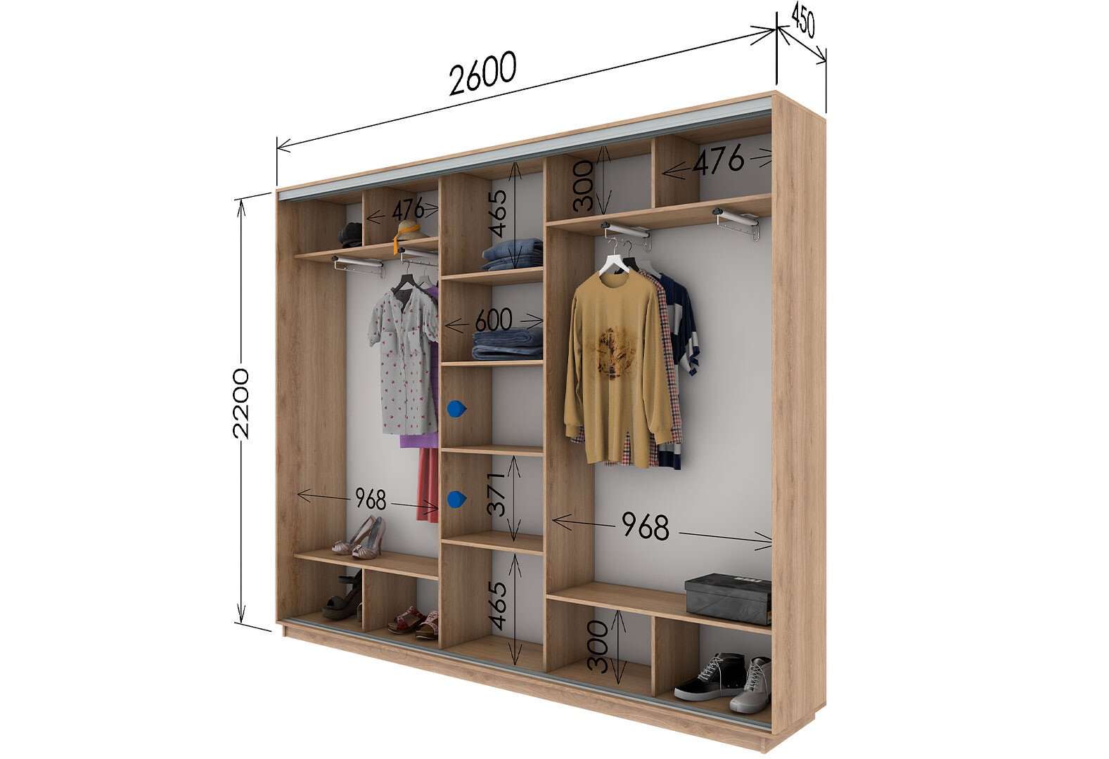 - Шафа-купе Garant 3-дверна 260x220x45 см