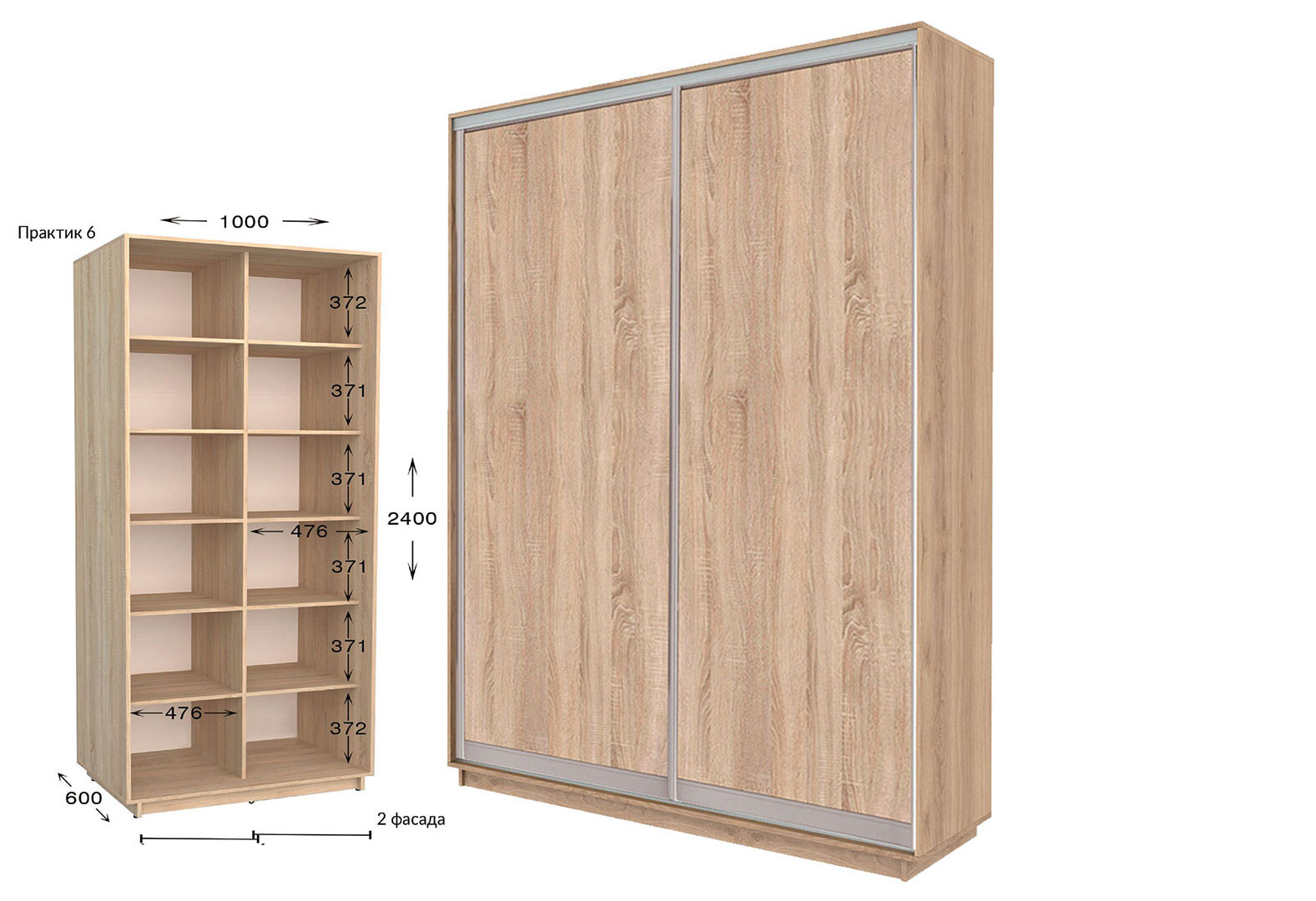 - Шафа-купе Garant Практик №6 2-дверна 100 см