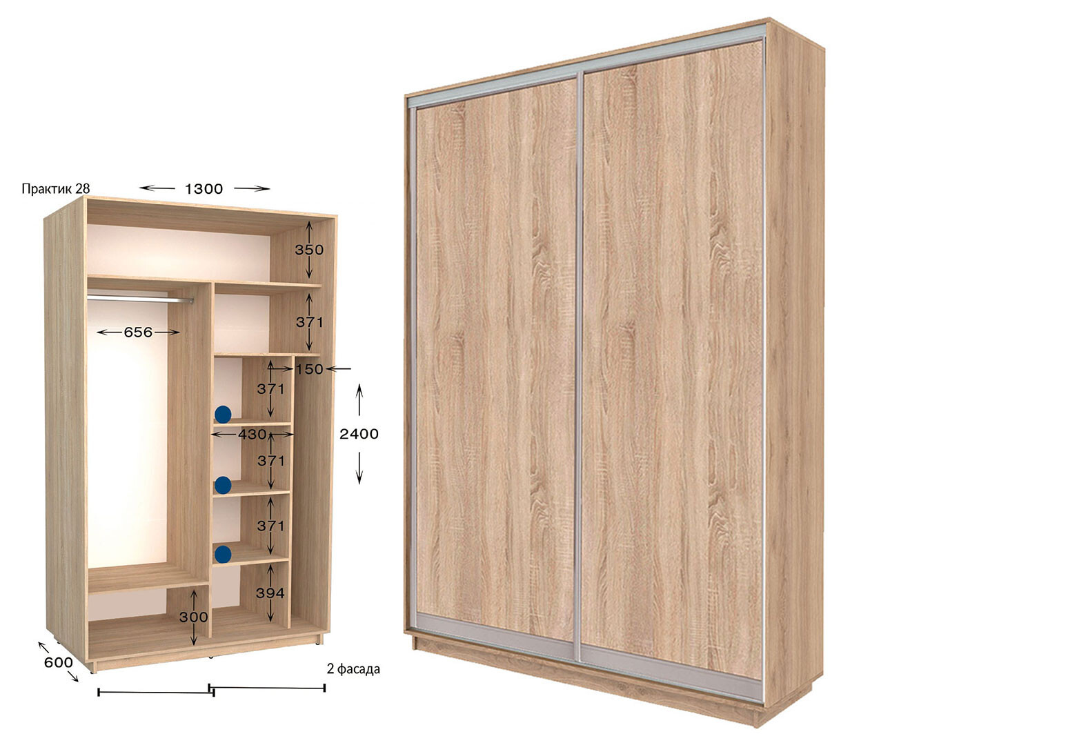 Шафа-купе Garant Практик №28 2-дверна 130 см