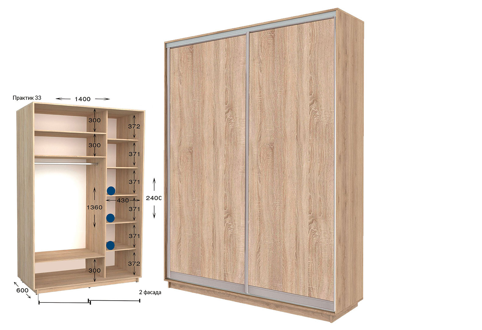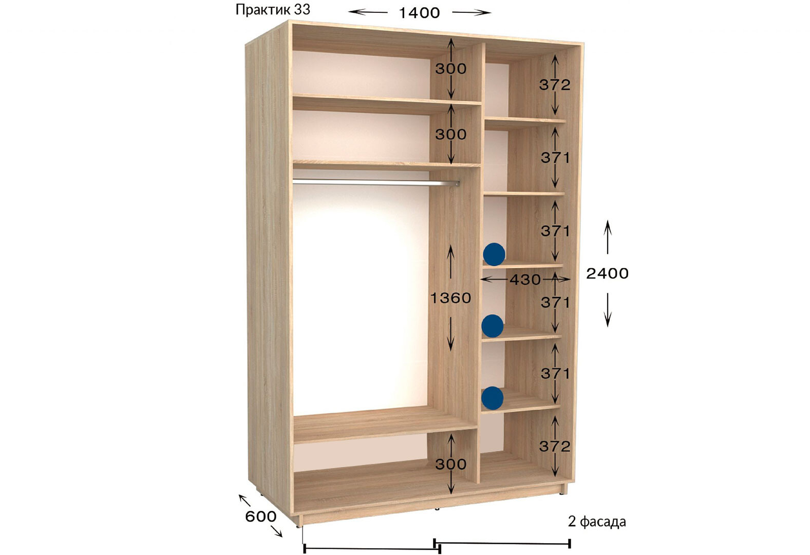 - Шафа-купе Garant Практик №33 2-дверна 140 см