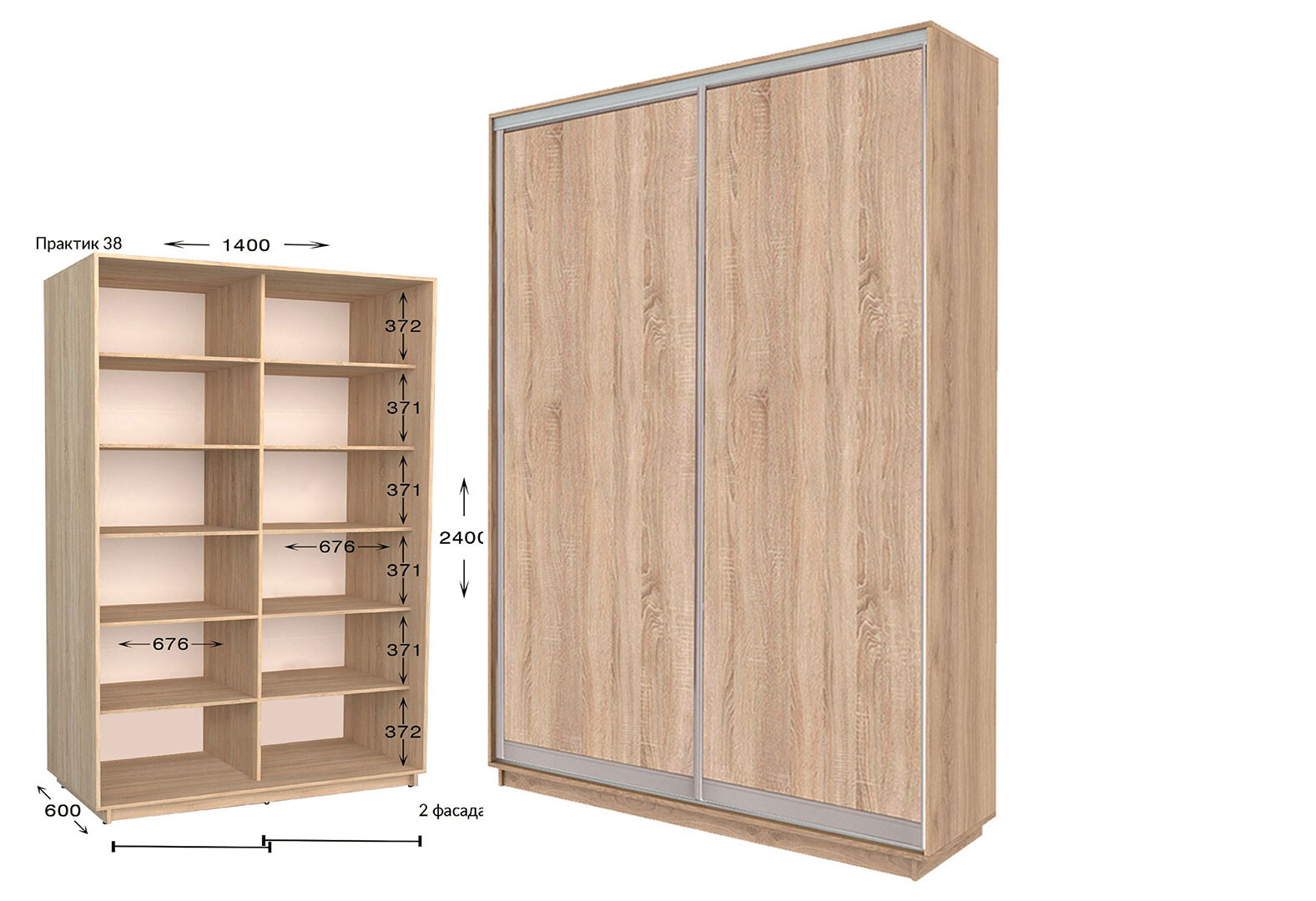 Зображення 2 - Шафа-купе Garant Практик №38 2-дверна 140 см
