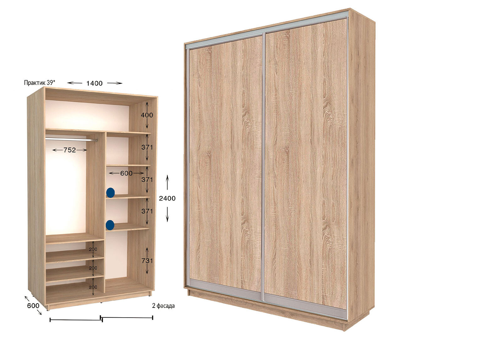 - Шафа-купе Garant Практик №39 2-дверна 140 см