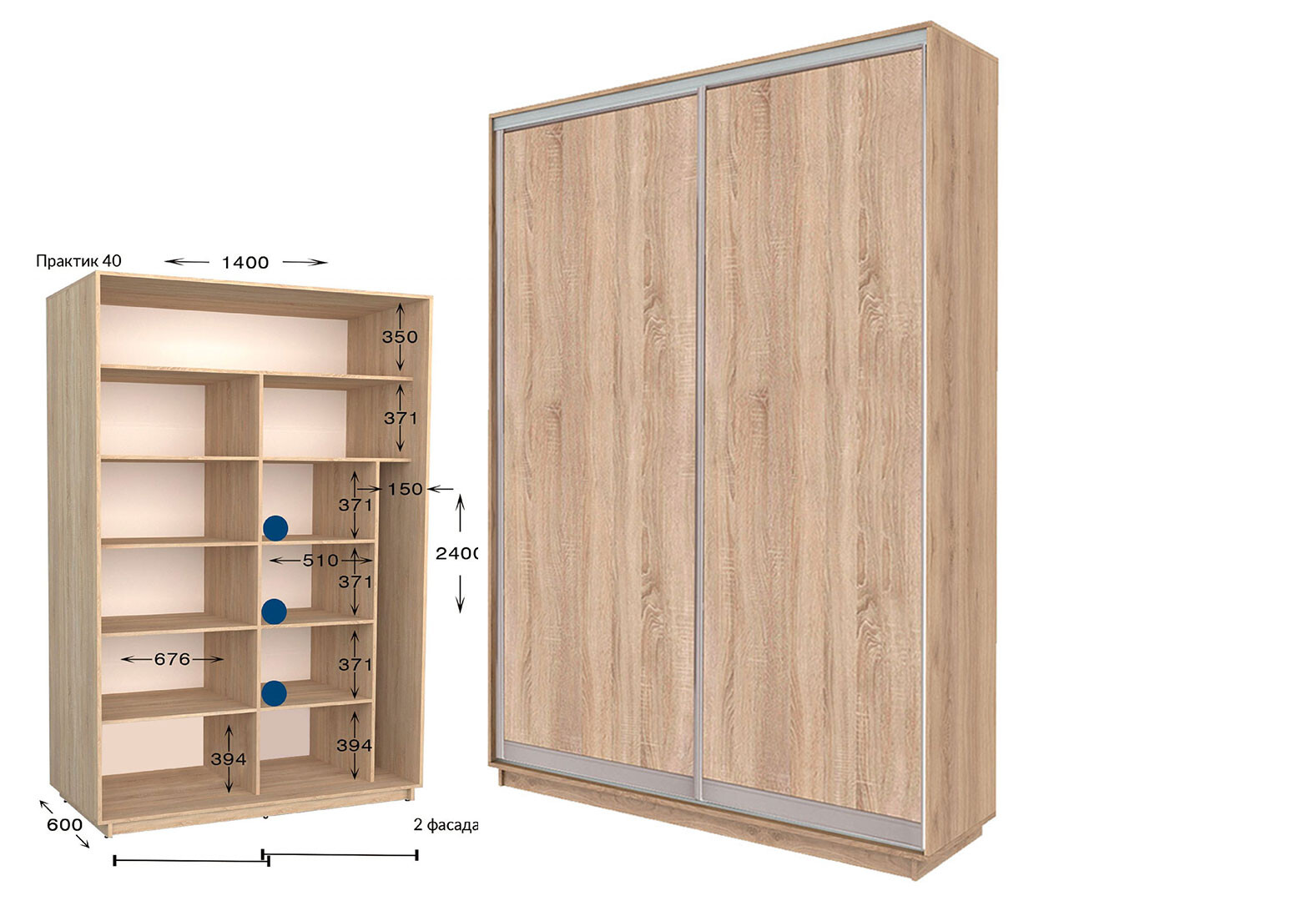 - Шафа-купе Garant Практик №40 2-дверна 140 см