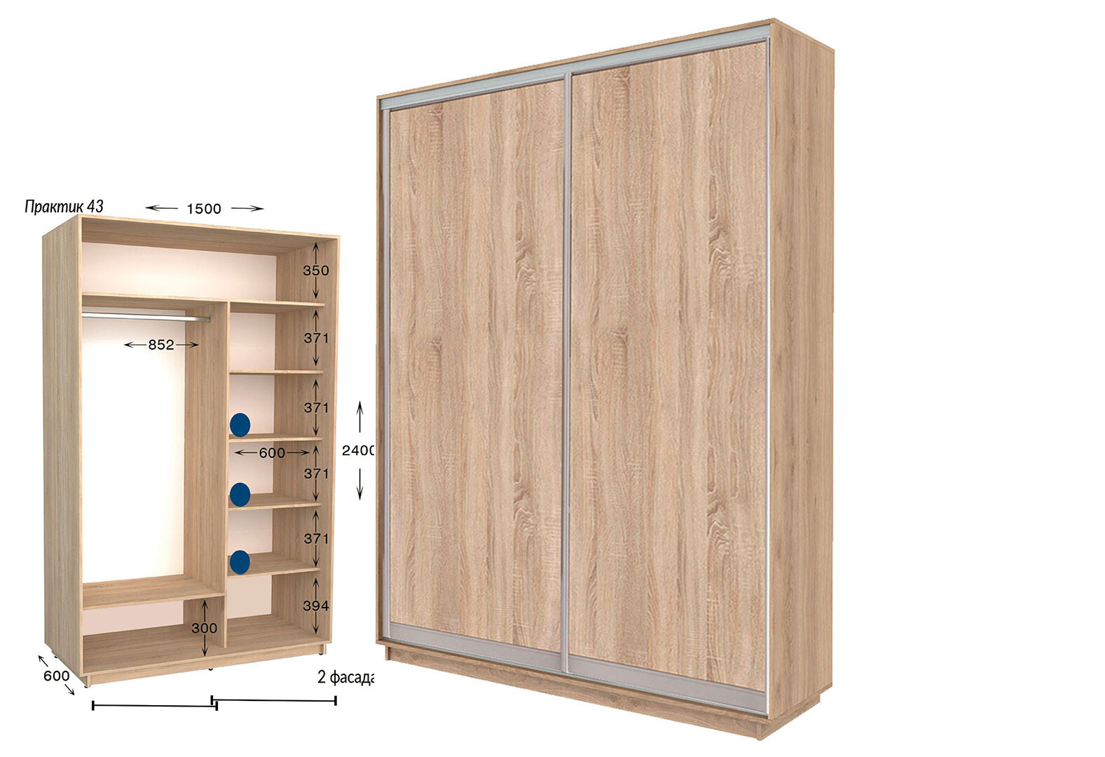 Зображення 2 - Шафа-купе Garant Практик №43 2-дверна 150 см