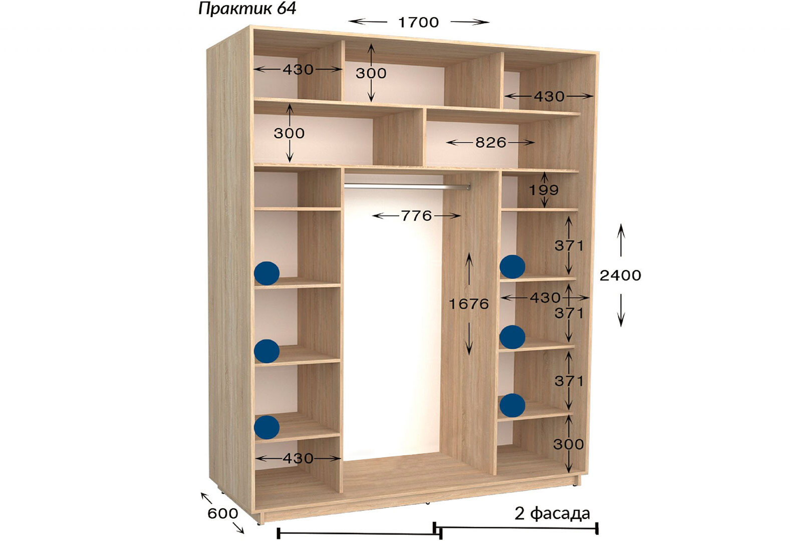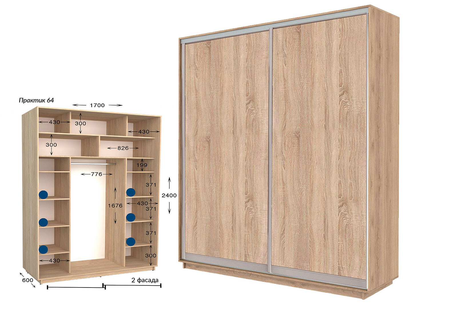 - Шафа-купе Garant Практик №64/2 2-дверна 170 см