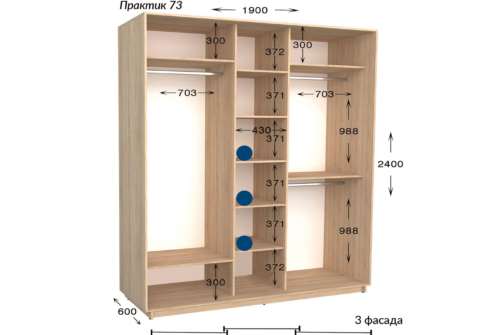 Шафа-купе Garant Практик №73 3-дверна 190 см