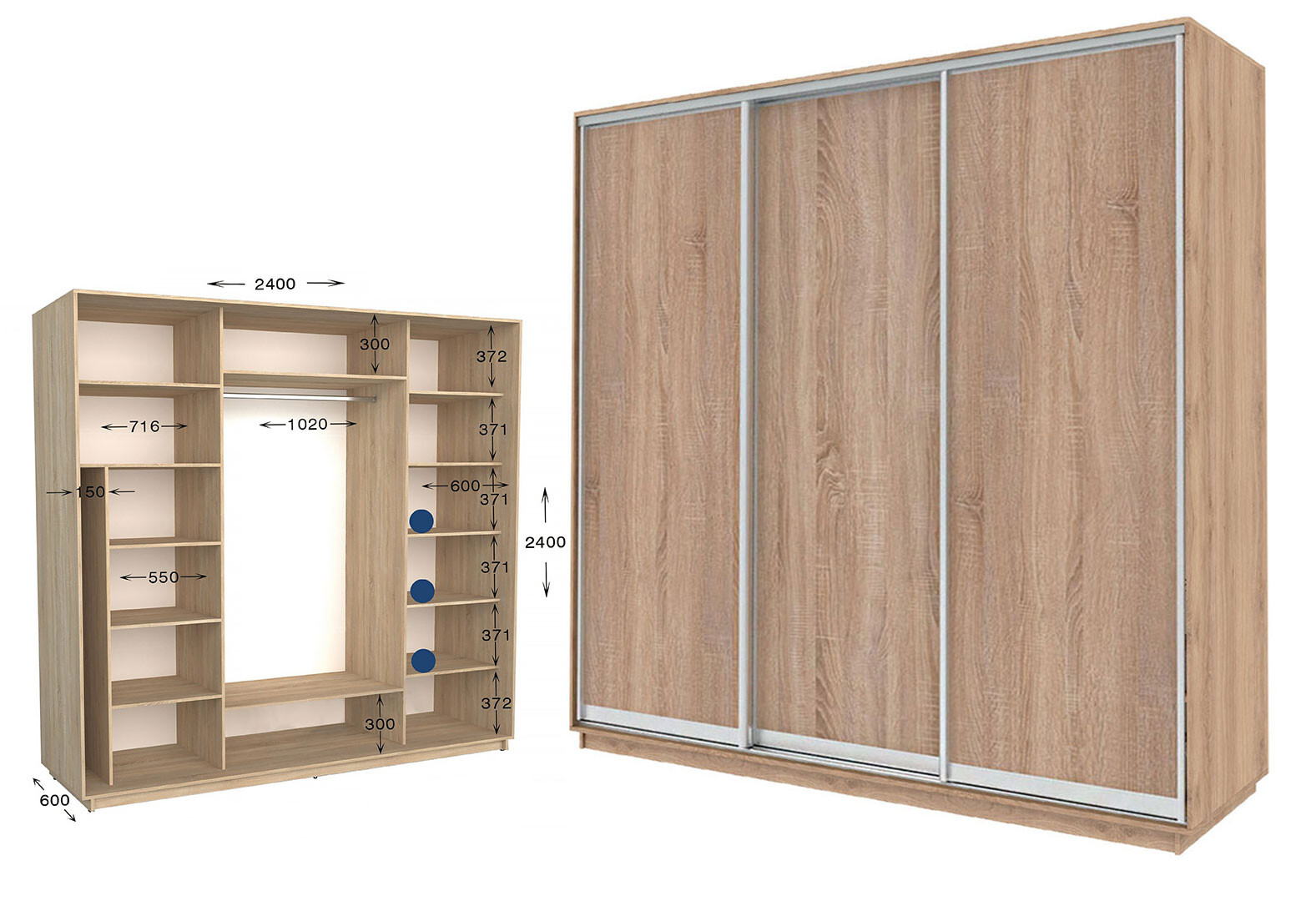- Шафа-купе Garant Практик 119/3 3-дверна 240 см