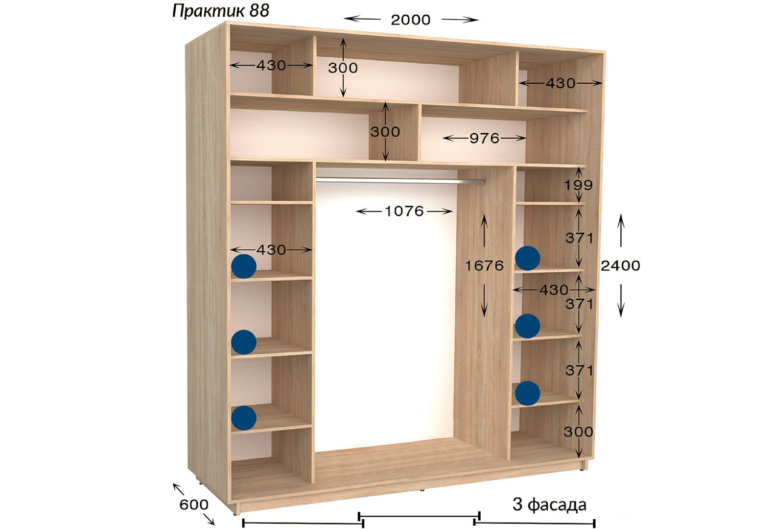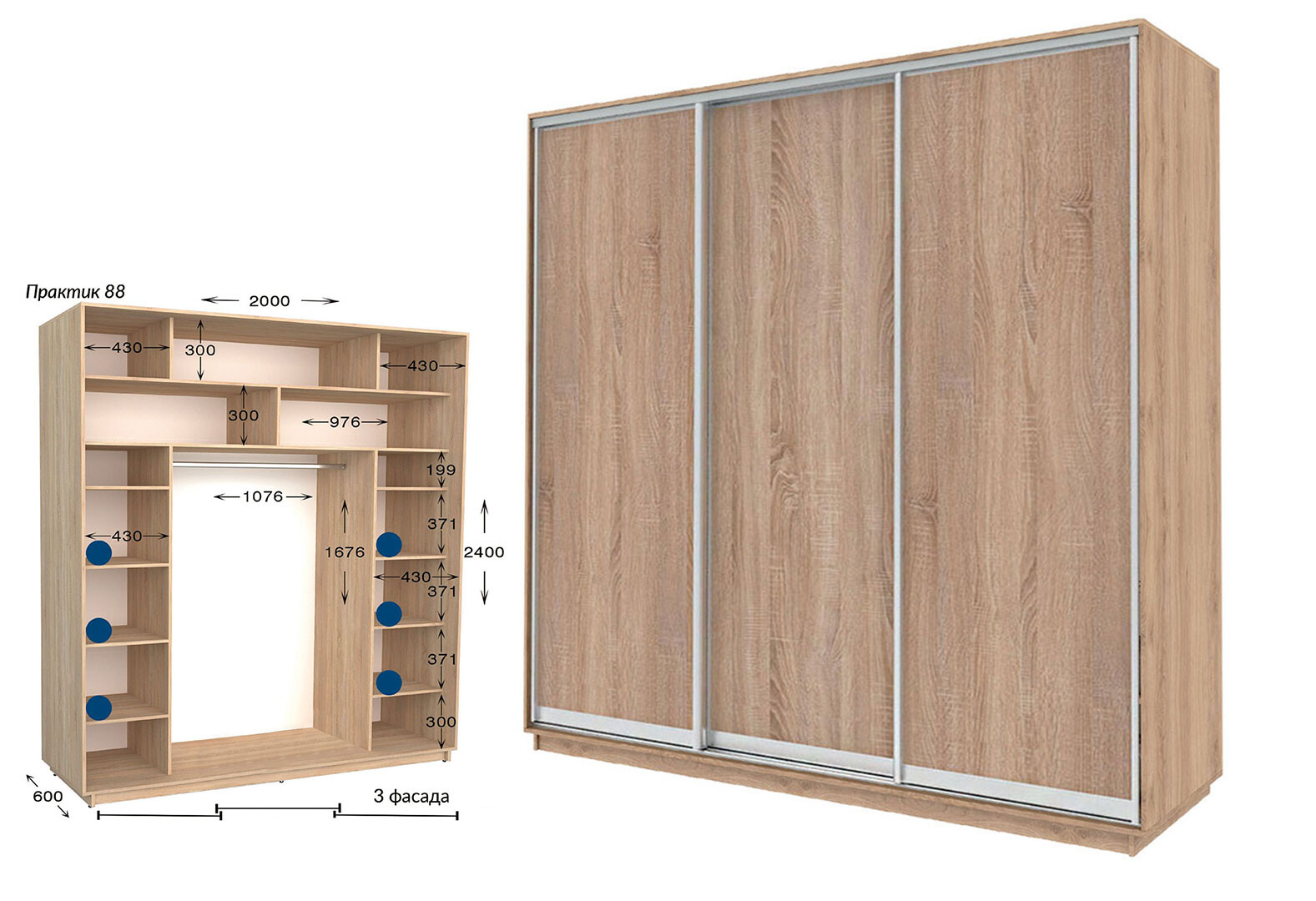 Шафа-купе Garant Практик №88/3 3-дверна 200 см
