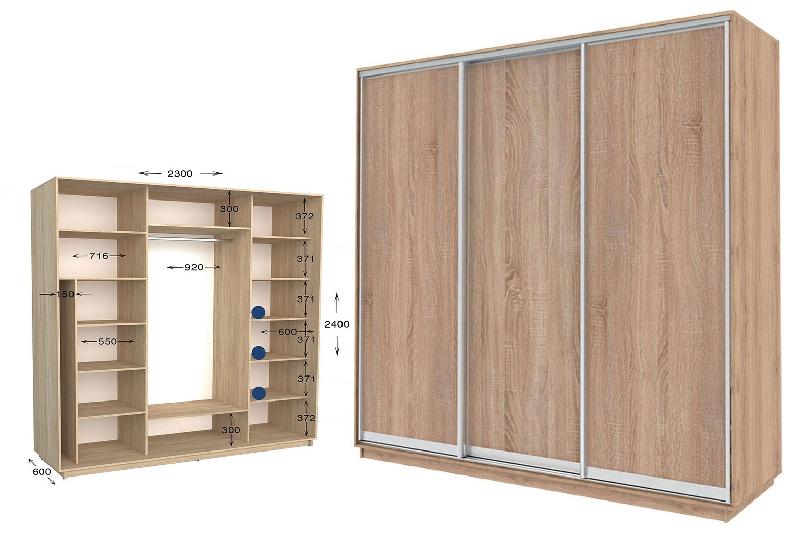 - Шафа-купе Garant Практик №111/3 3-дверна 230 см