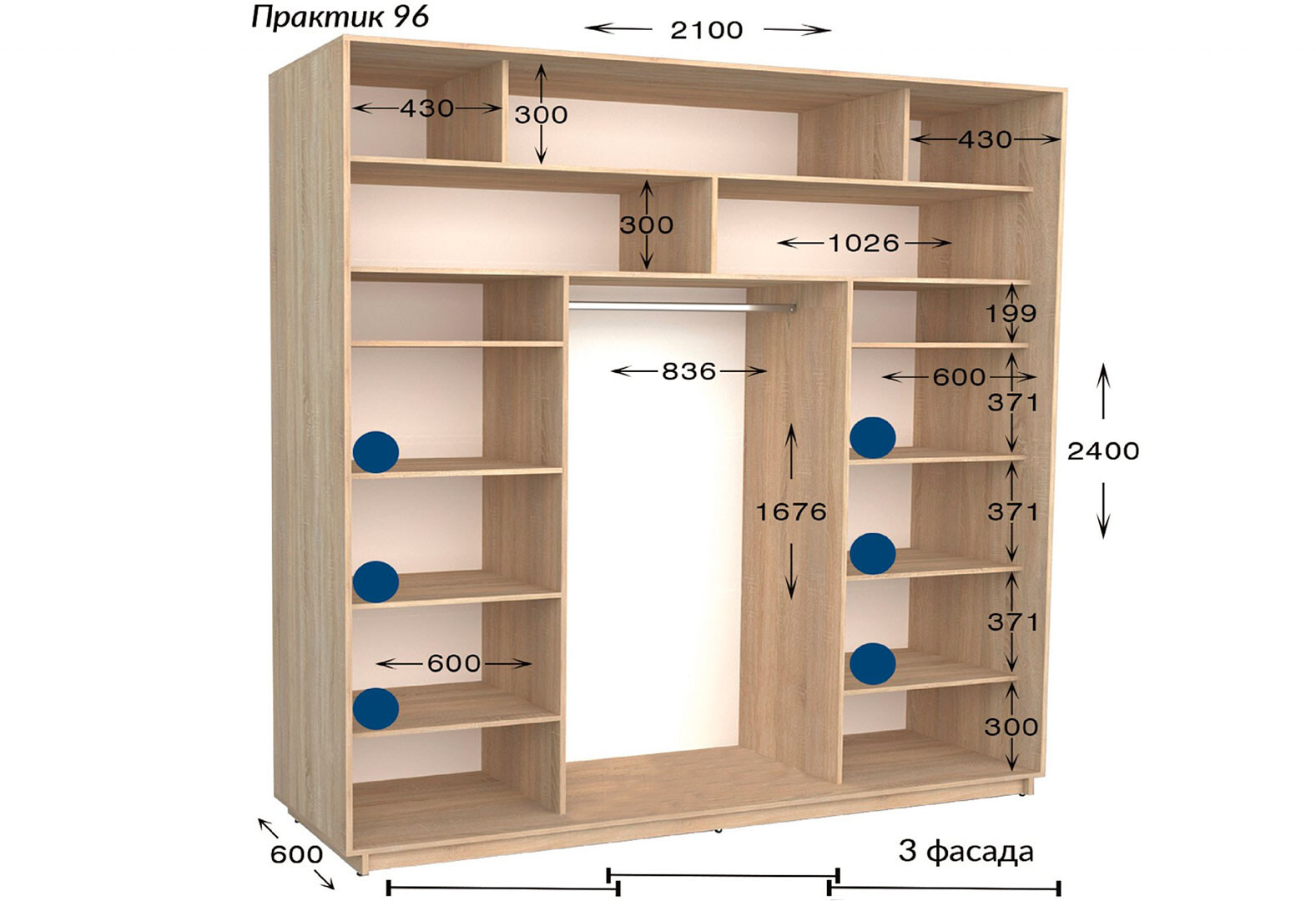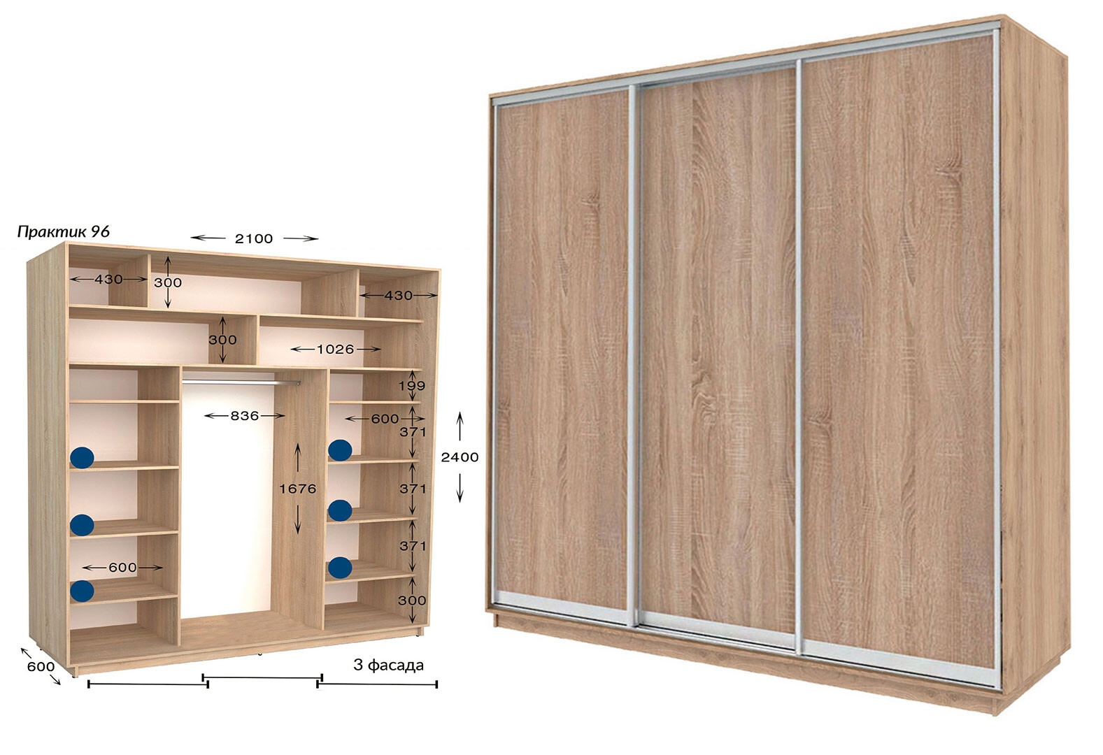 - Шафа-купе Garant Практик №96/3 3-дверна 210 см
