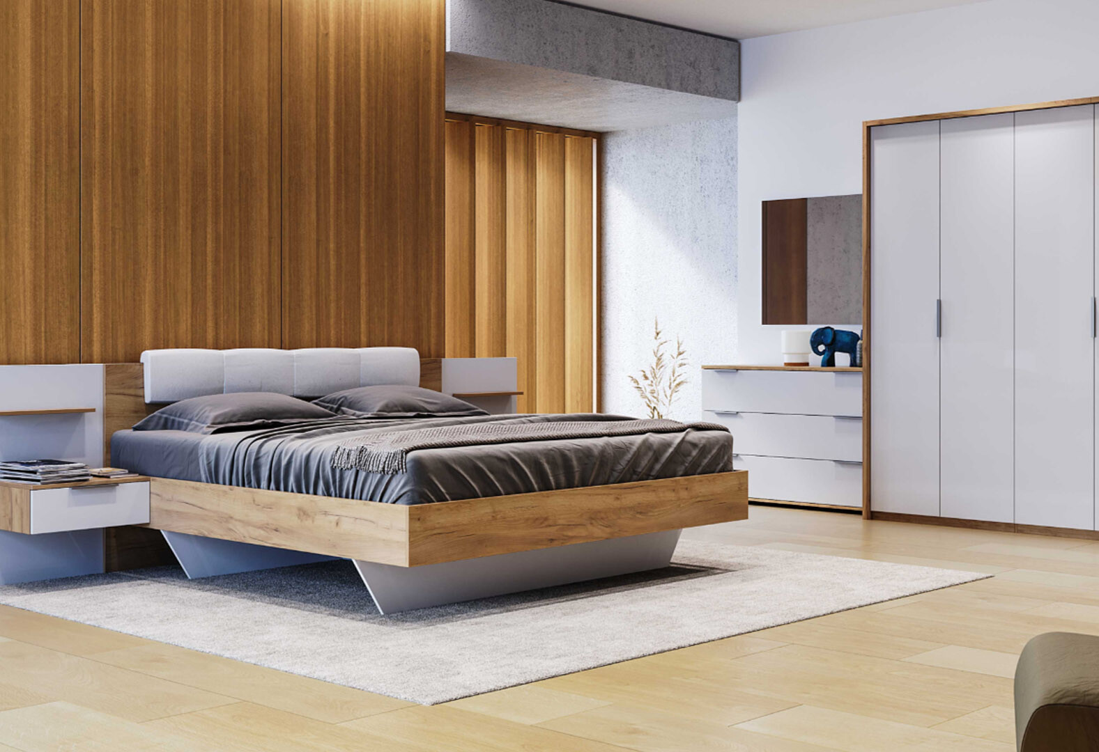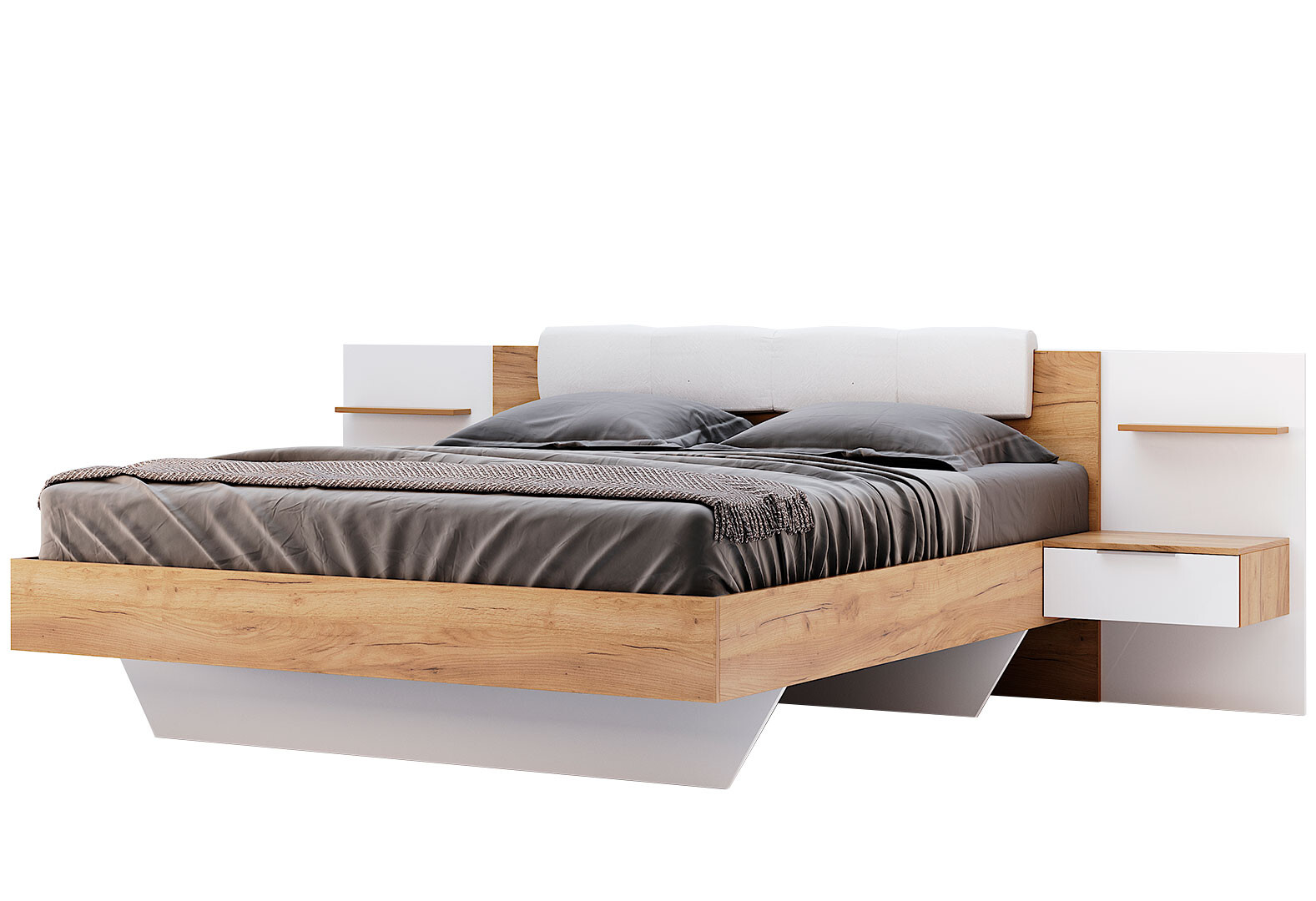 Ліжко MiroMark Асті (без вкладу) 160х200 см з тумбами, дуб крафт/білий