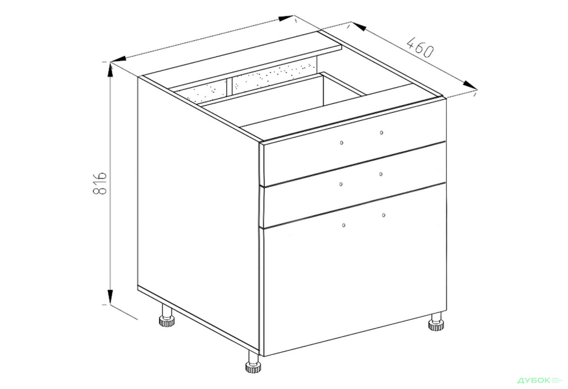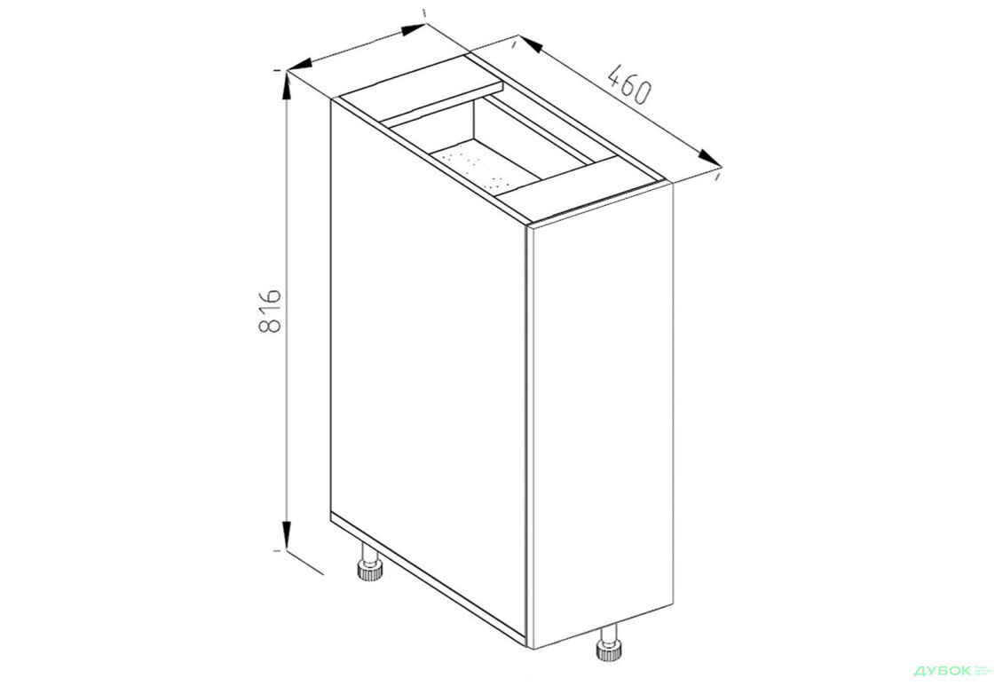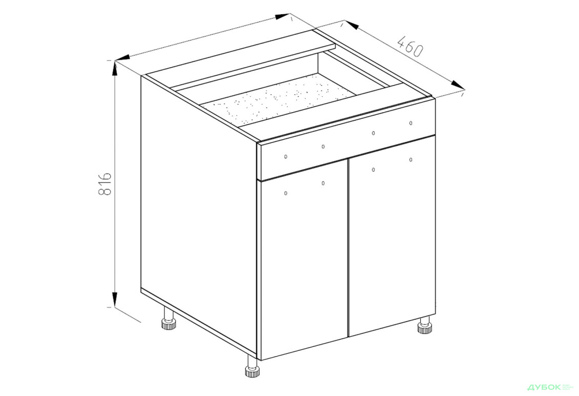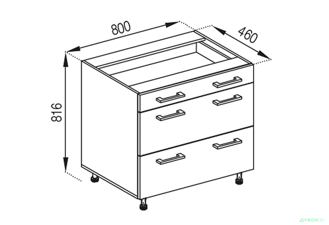 До кухонних тумбочок входить повний комплект фурнітури (дверні ручки, петлі, нерегульовані петлі та матеріал для кріплення), а також ніжки. Стільниця до кухні замовляється окремо.