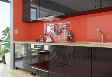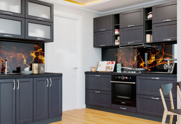 Поверхня фасадів деревоподібна, за бажанням можна доповнити вітринами із матованого скла, або комбінувати із фасадами з декором
