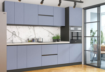 Фасади кухні - МДФ з матовою поверхнею, фрезерування і внутрішня рамка якого надає максимальне відчуття об'єму. Кольорова гама представлена на сторінці товару. Кухонні модулі збираються на кріплення конфірмат («шурупна стяжка»). Внутрішні деталі ДСП, ДВП білого кольору.