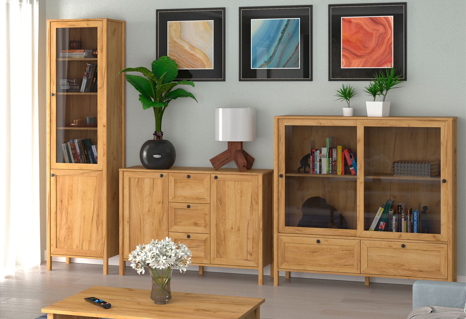 - Комплект стінка з вітринами VMV holding Klark / Кларк 308 см Дуб крафт золотий