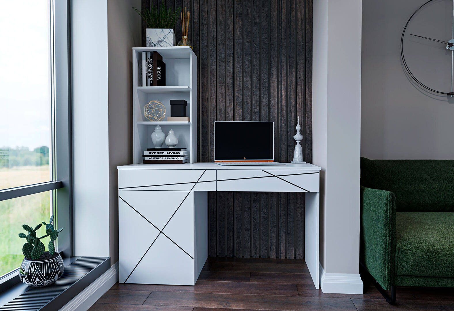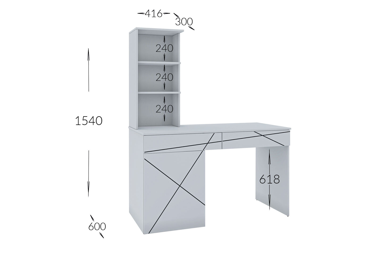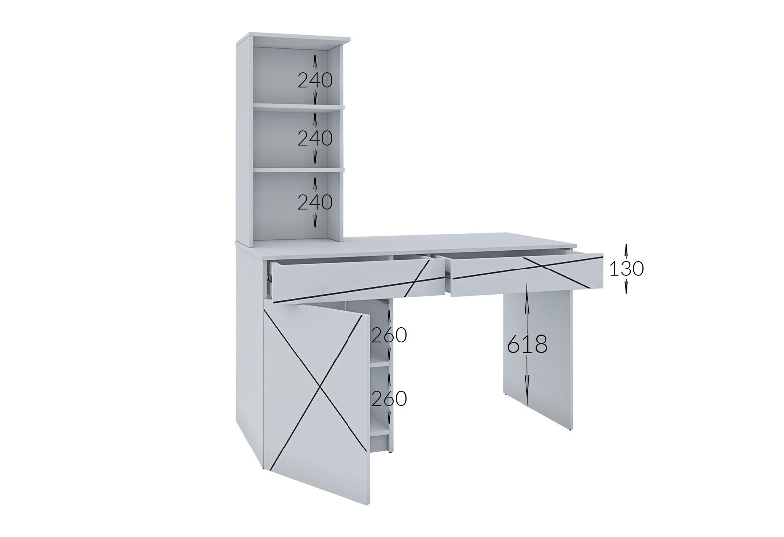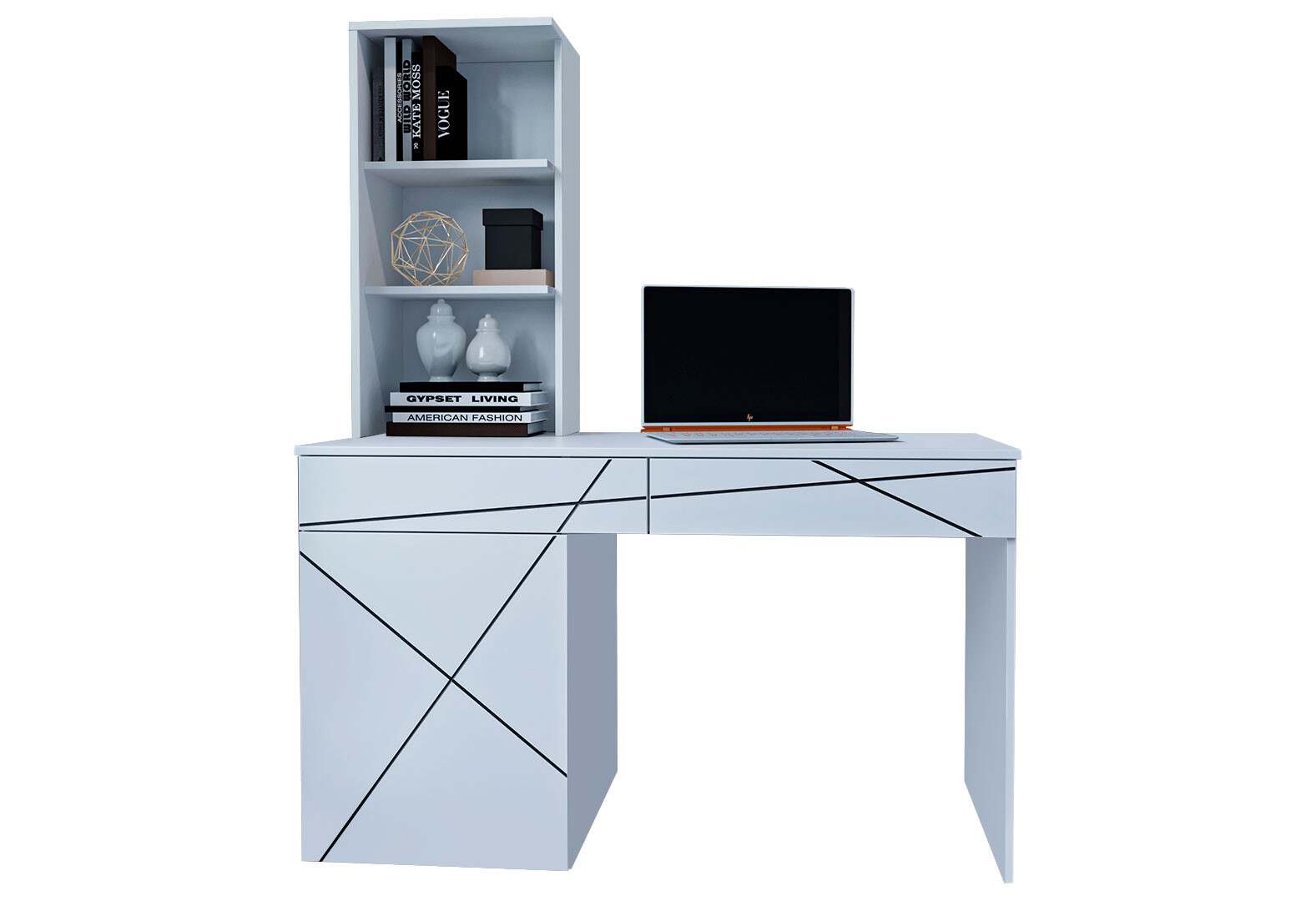 Стіл письмовий Garant Геометрія 130x61 см з тумбою, шухлядами і надставкою, білий