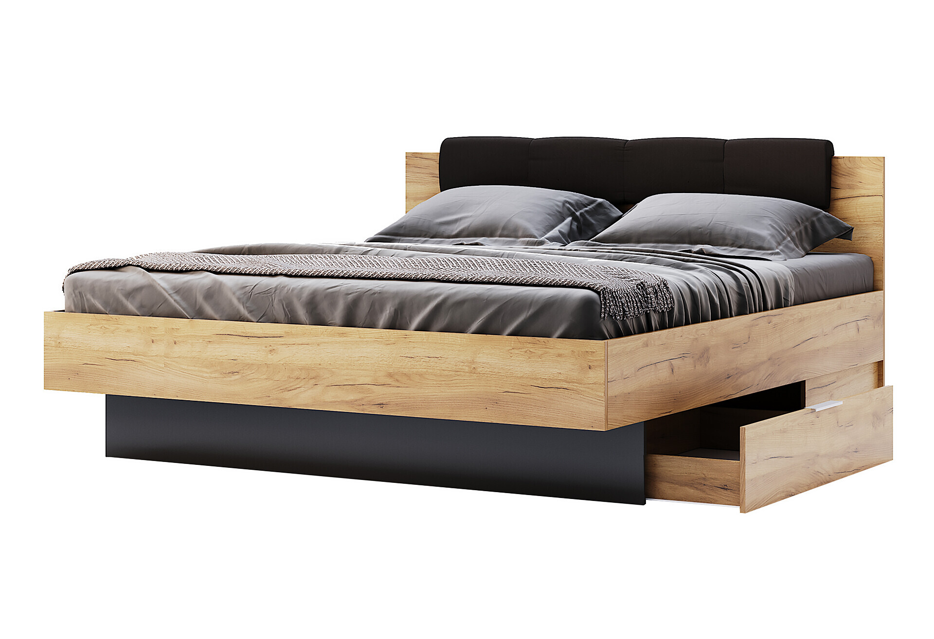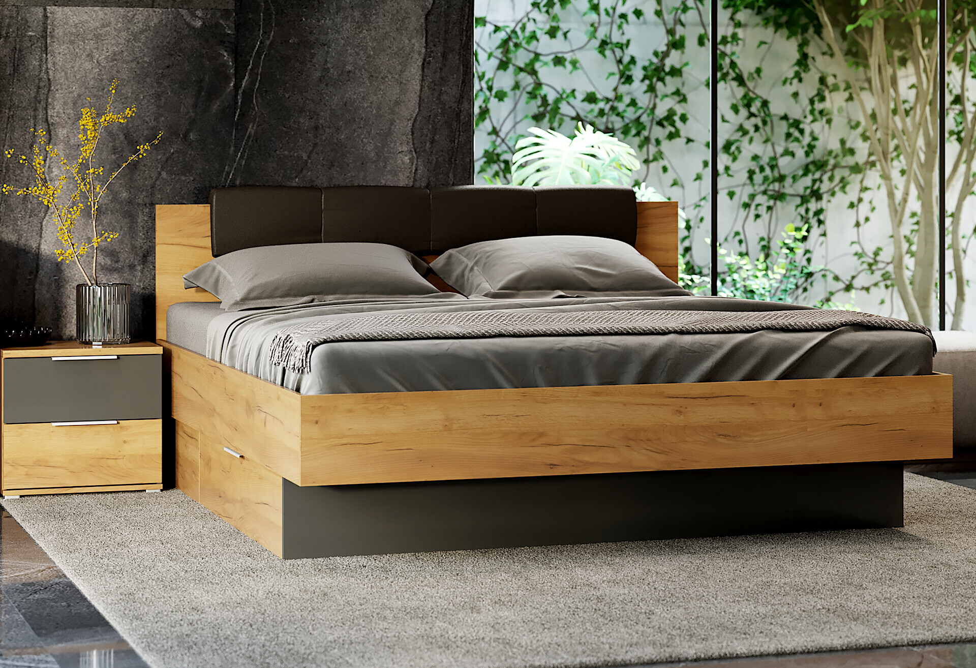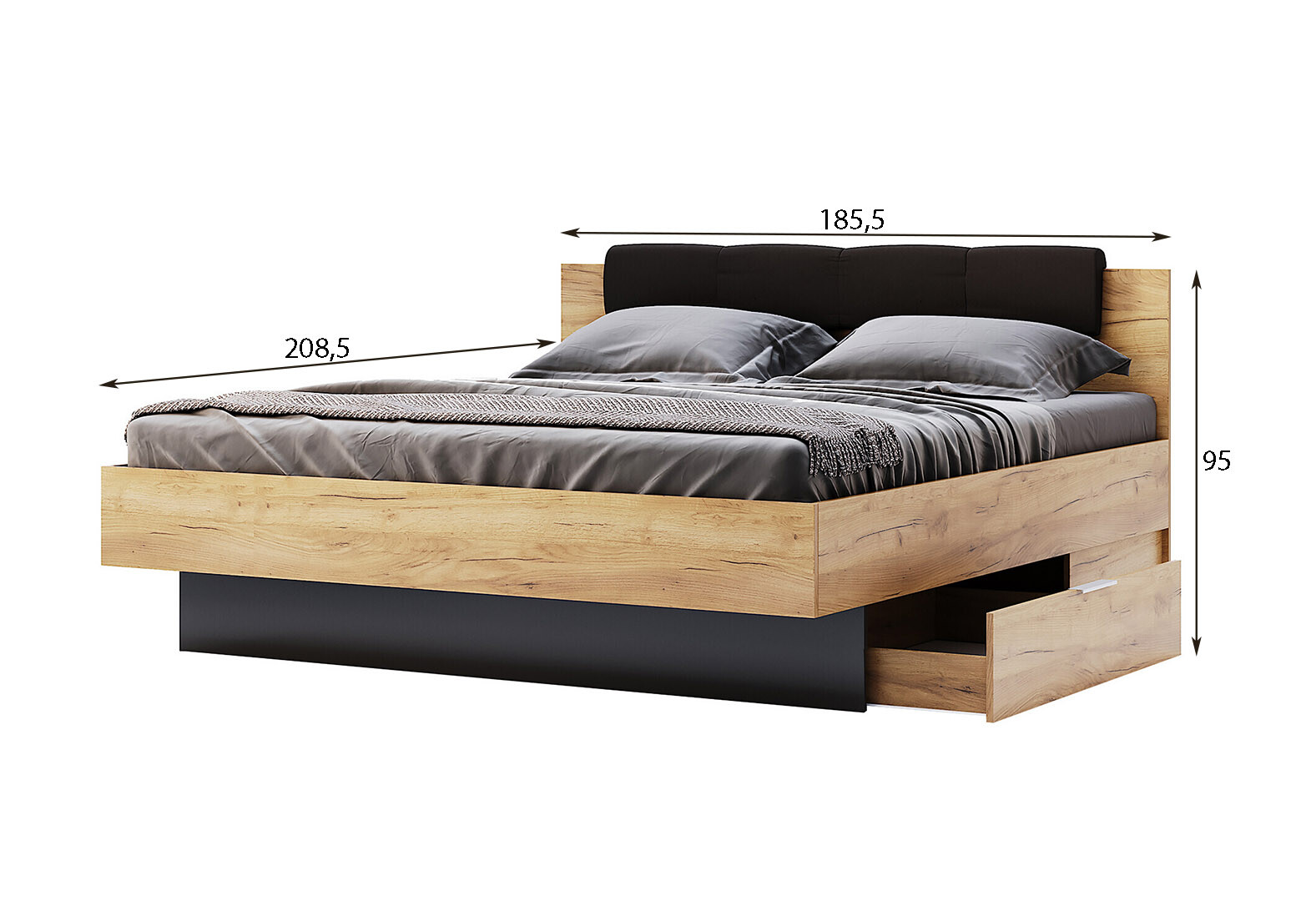Ліжко MiroMark Луна 180х200 см з шухлядами, лава/дуб крафт