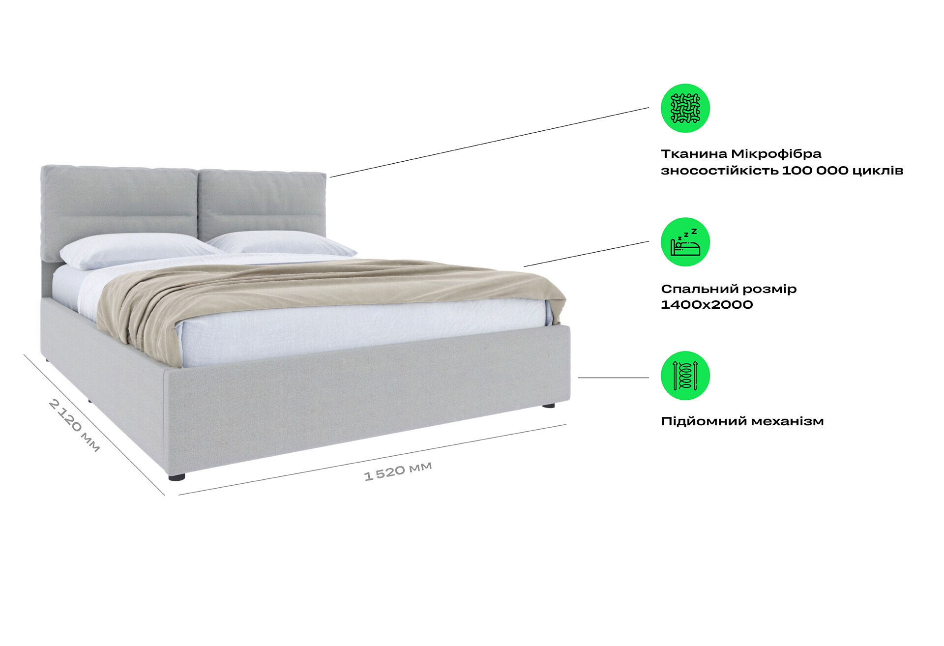 Ліжко-подіум UMa Верона 140х200 см підйомне, світло-сіре (Soro 83)