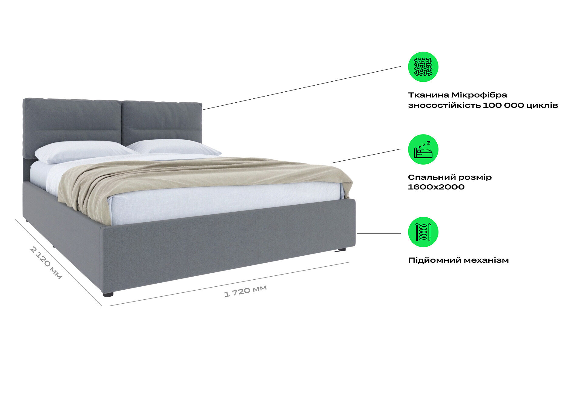 Ліжко-подіум UMa Верона 160х200 см підйомне, сіре (Soro 93)