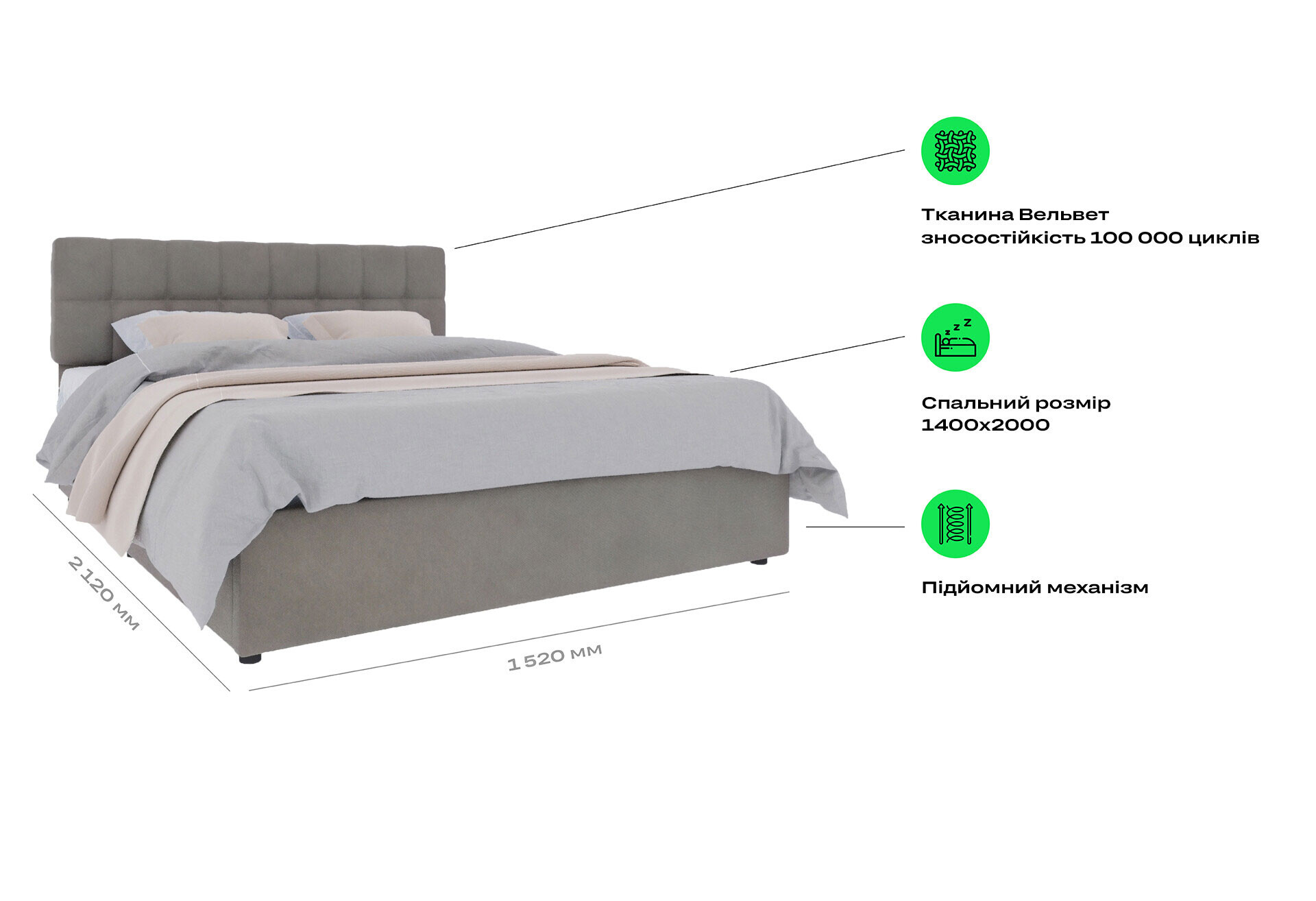 Ліжко-подіум UMa Трініті 140х200 см підйомне, сіро-коричневе (Fancy 96)