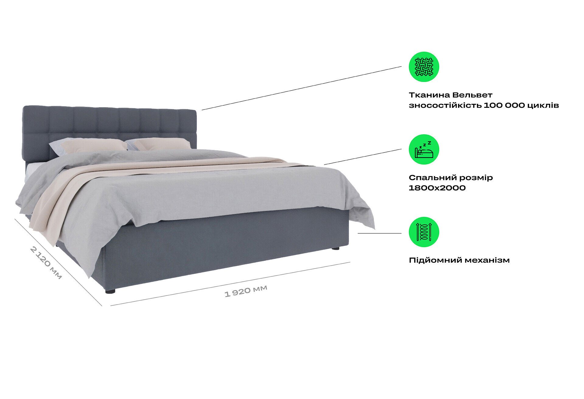 Ліжко-подіум UMa Трініті 180х200 см підйомне, графіт (Fancy 97)