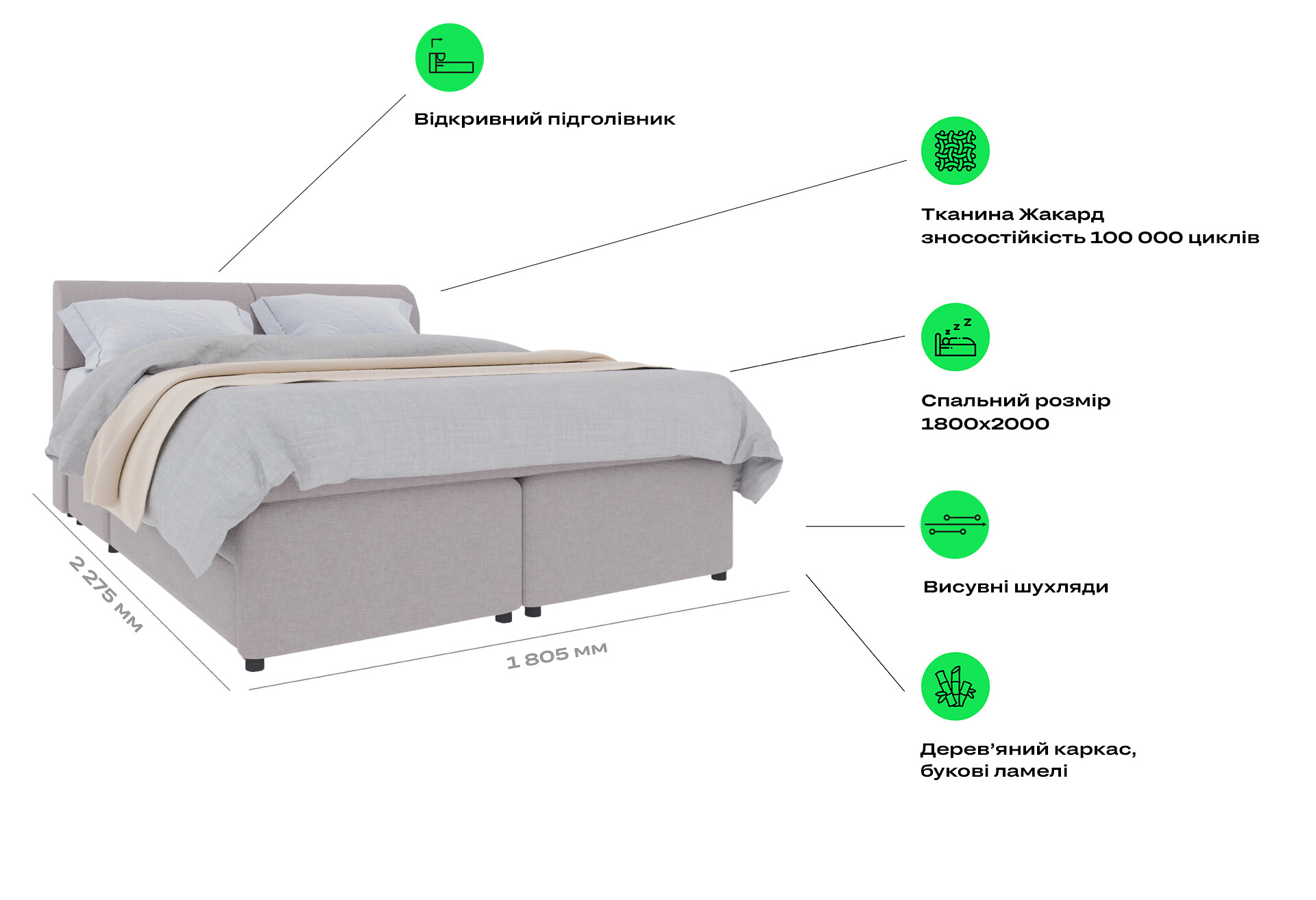 Ліжко-подіум UMa Ісіда 180х200 см з шухлядами і коробами, бежеве (Sorrento 25)