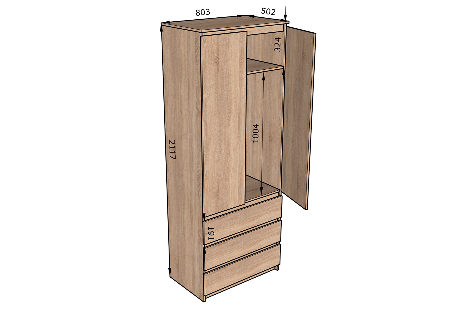Зображення 3 - Шафа Moreli Т211 зі штангою та шухлядами 2-дверна 80 см
