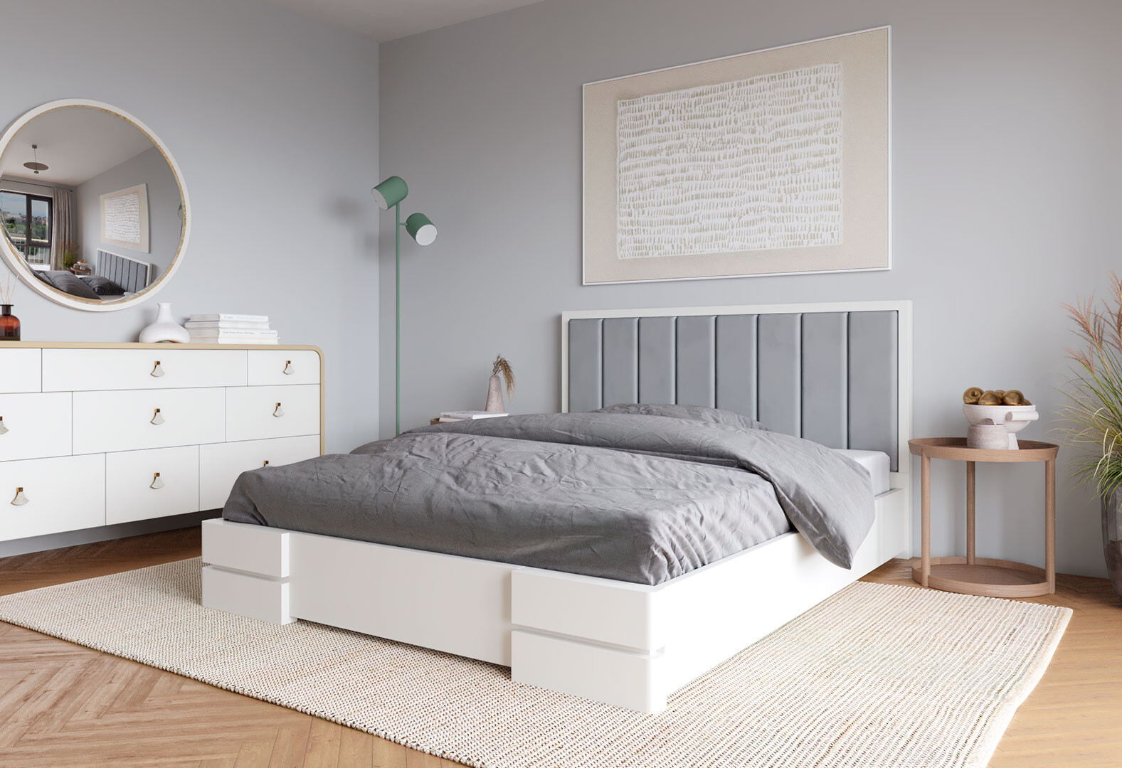 Ліжко-подіум Arbor Drev Мілано 180 см тк. Лагуна 43, біле