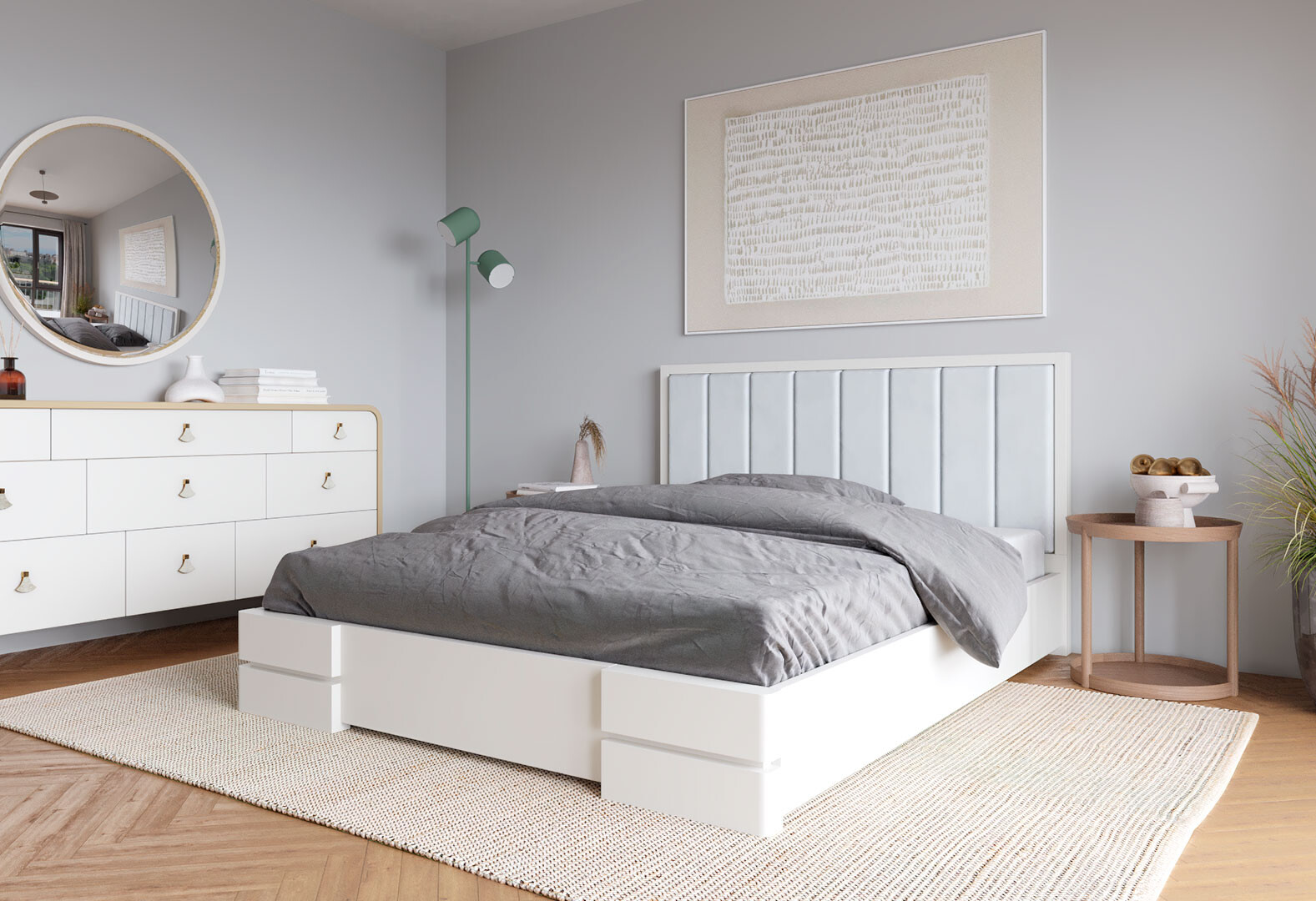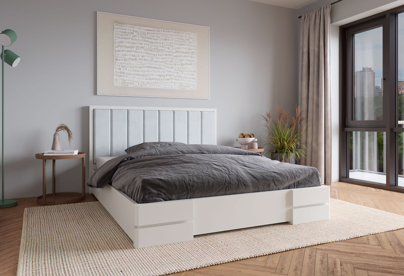 Ліжко-подіум Arbor Drev Мілано 180 см тк. Лагуна 31, біле