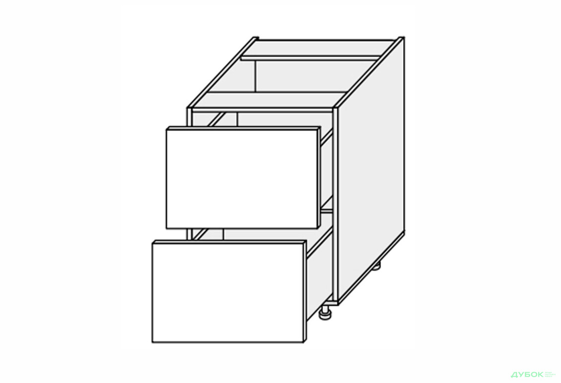 - Корпус виконаний з ДСП 16мм (Kronospan, Swisskrono, Swisspan), крайка ПВХ 0,6мм, меламінова (невидимі сторони). Задні стінки і дно шухляд з ХДФ біла 2,5мм