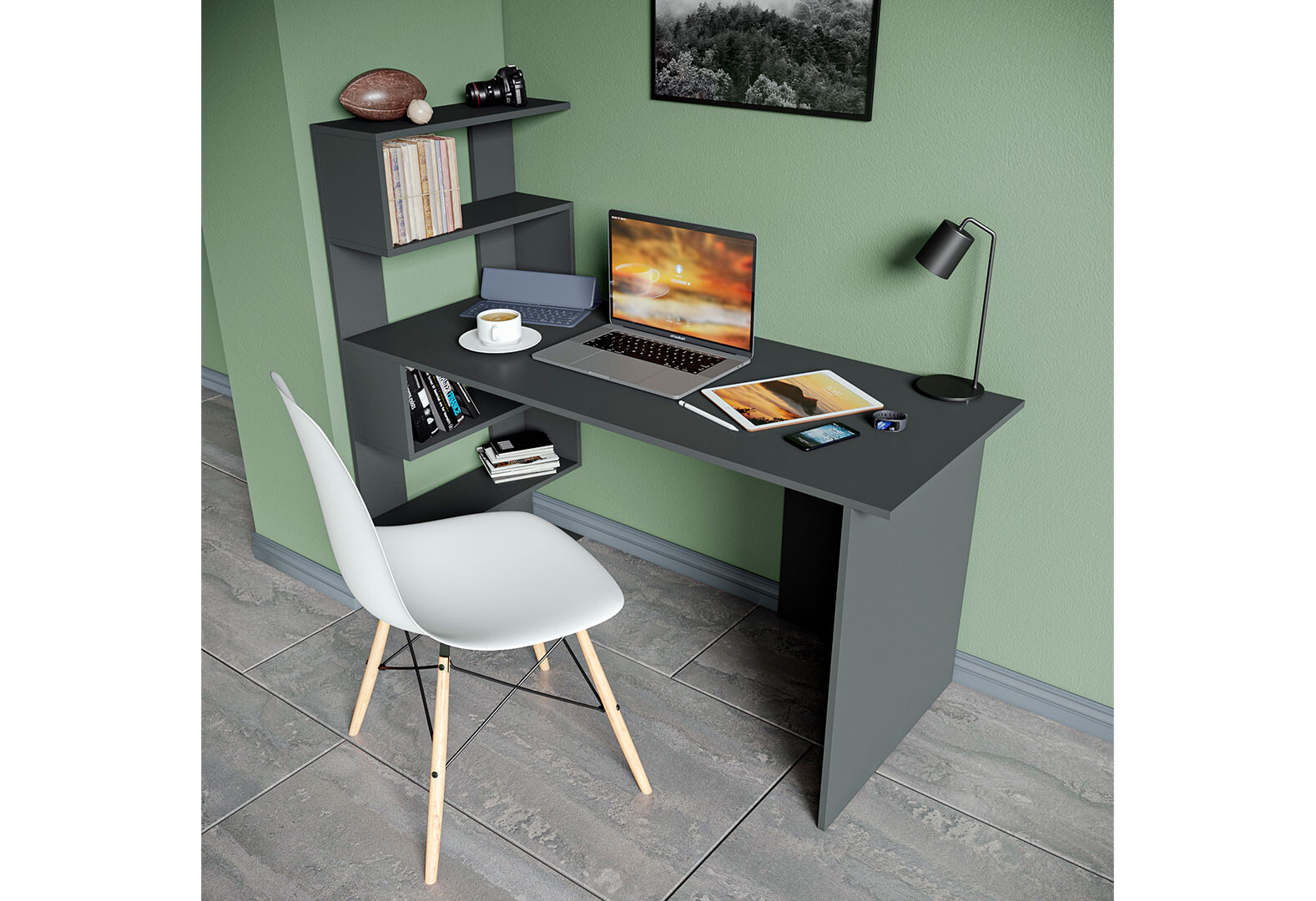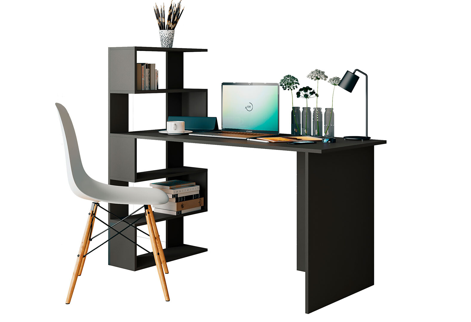 Стіл письмовий Moreli ST0024 142x60 см з боковими полицями зліва, антрацит