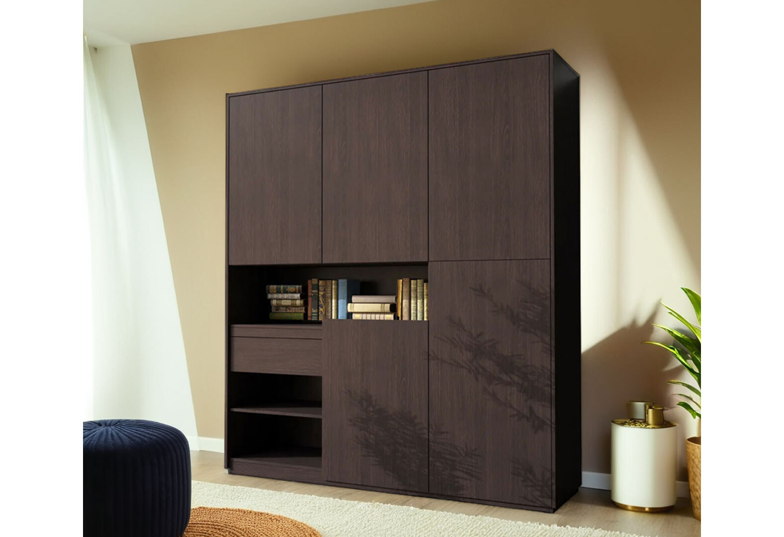 Шафа Moreli RS-2 з полицями, дверцятами та шухлядою 184 см, венге магія