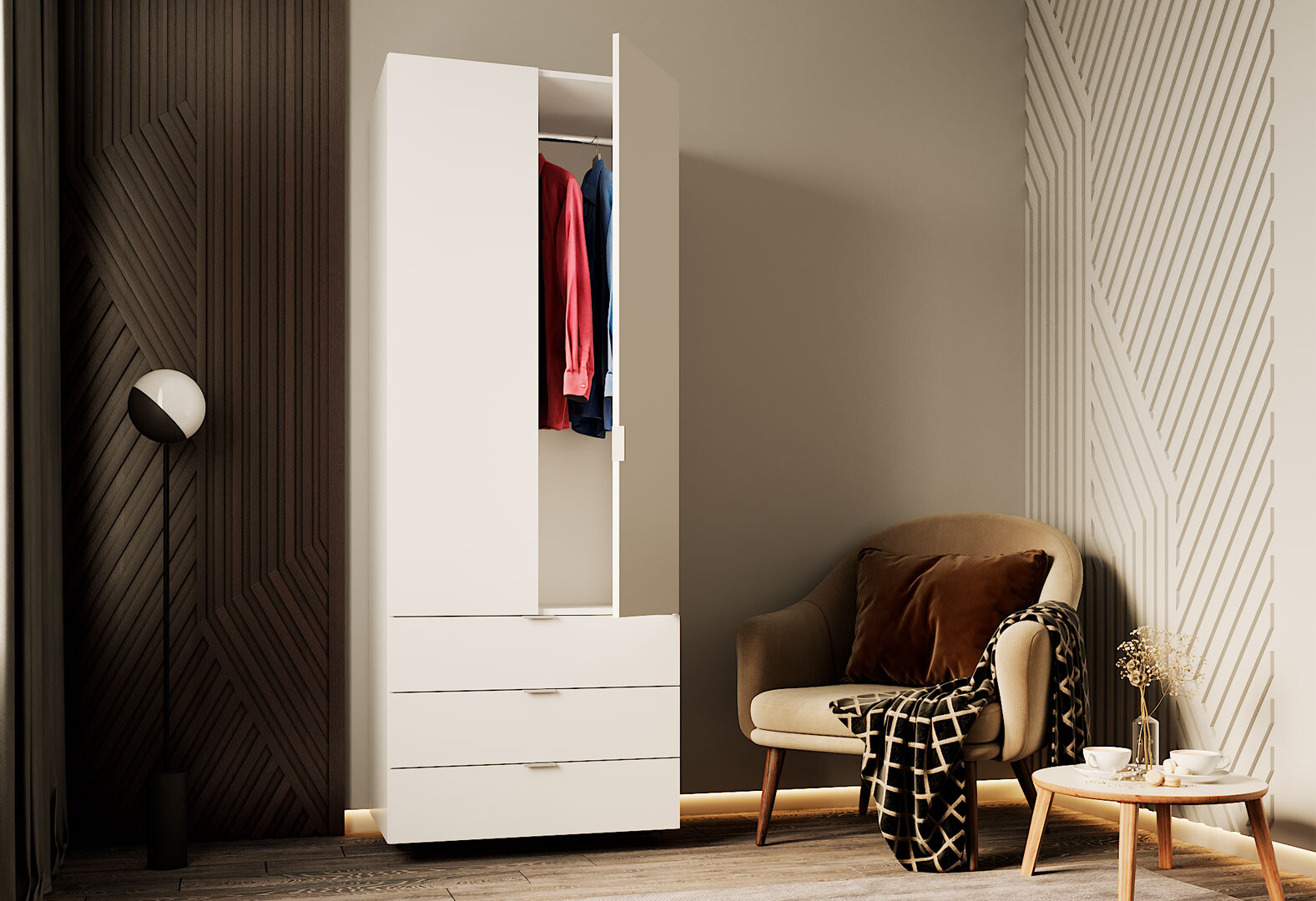 Шафа Doros Гелар 2 ДСП 2-дверна з 3 шухлядами 78 см Білий