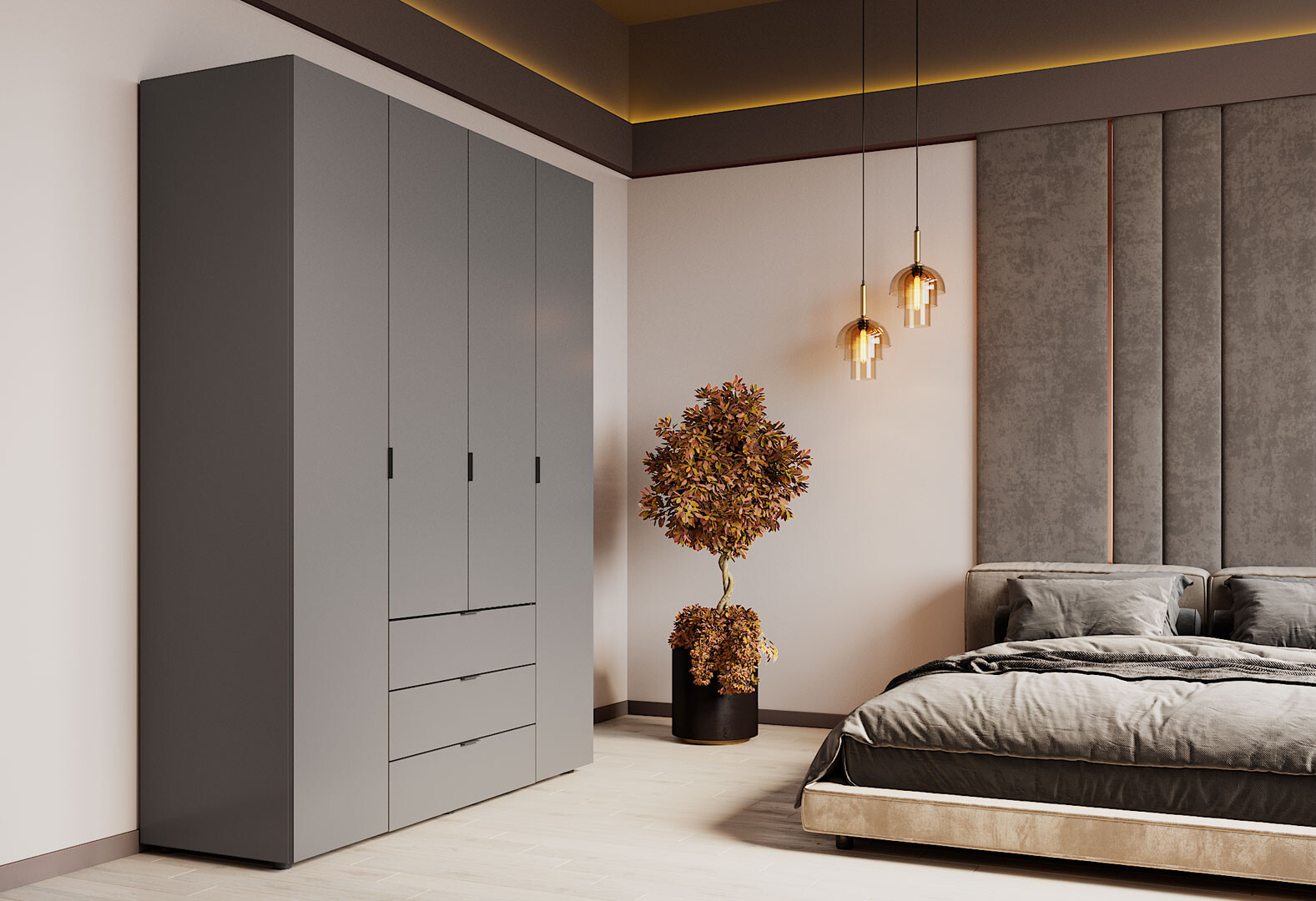 - Шафа Doros Гелар 4 ДСП 4-дверна з 3 шухлядами 155 см Графіт