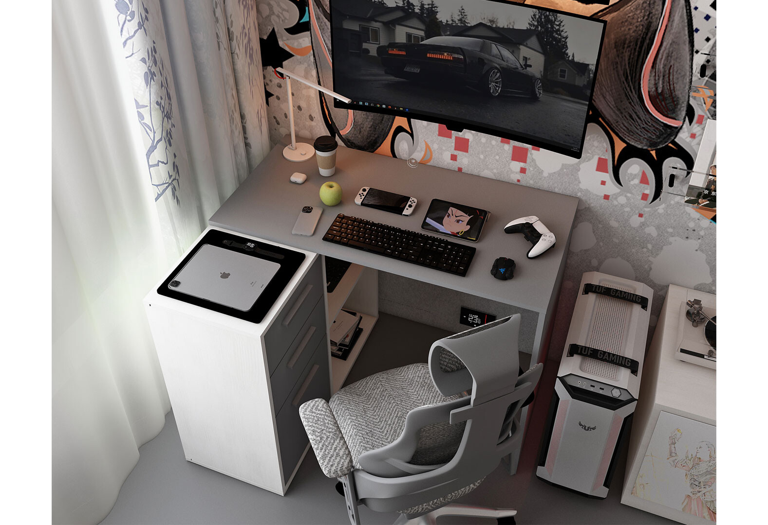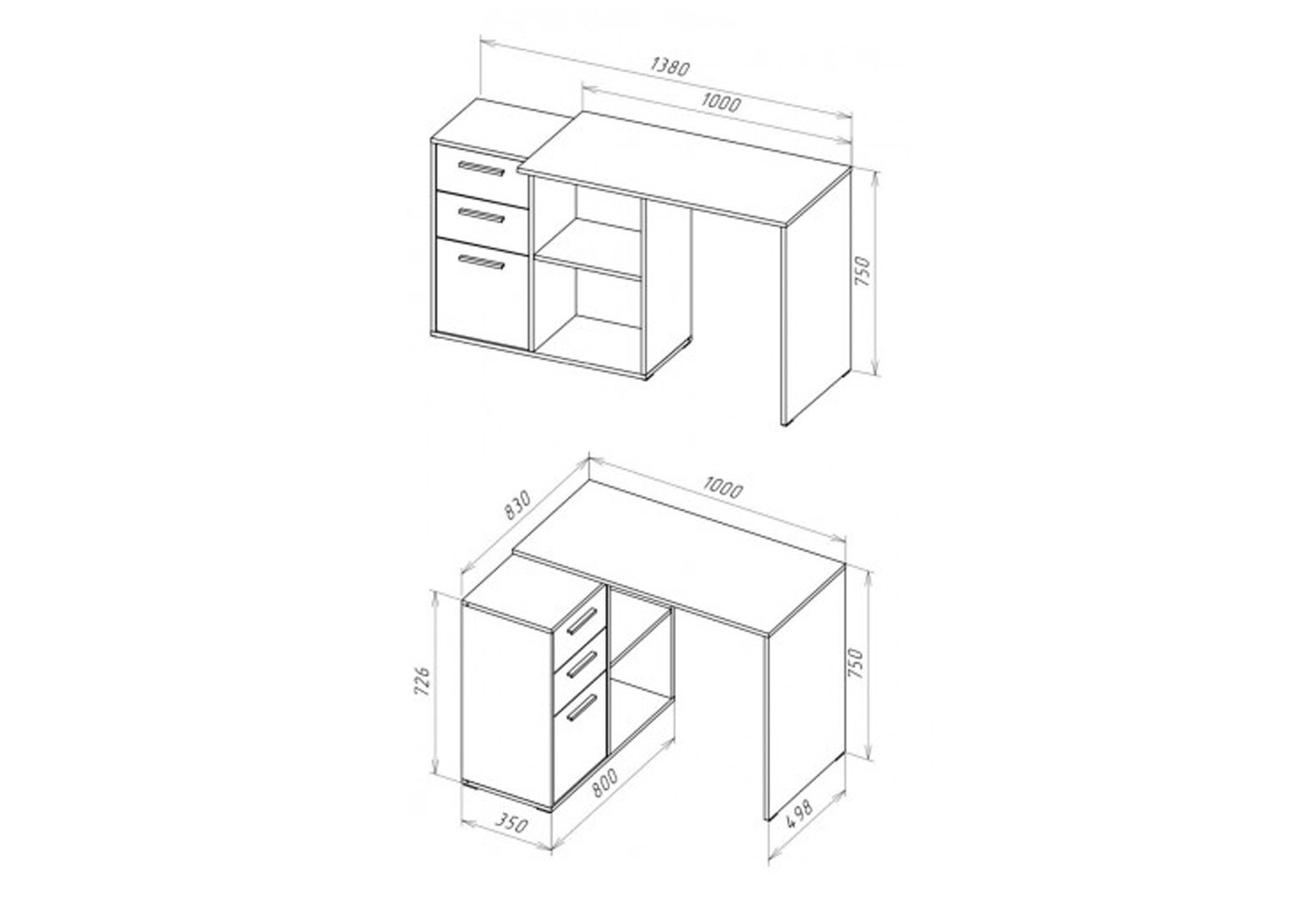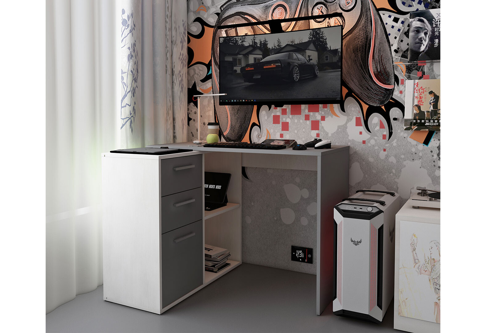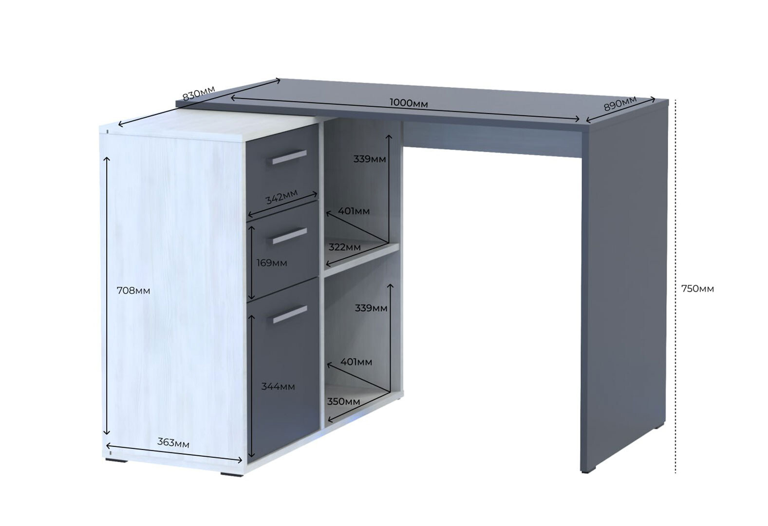 Стіл-трансформер Doros Т8 100х83 см з шухлядами та полицями, Біле Дерево / Графіт