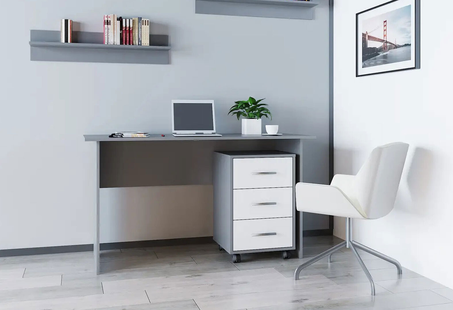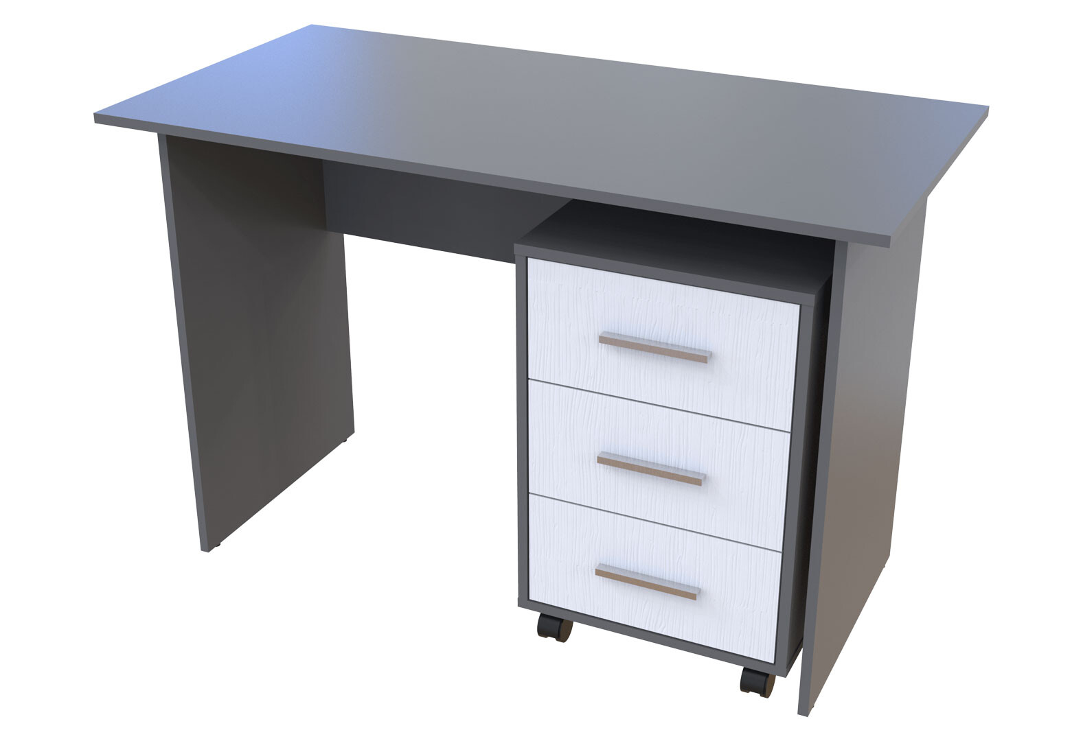 Стіл письмовий Doros Т3 120х60 см з тумбою на колесиках з 3 шухлядами, Антрацит / Білий