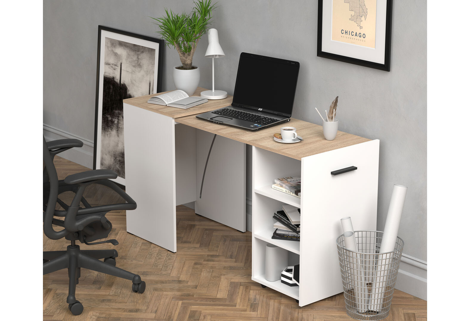 Зображення 1 - Стіл-тумба трансформер Knap Knap Hobana / Хобана з трьома відкритими поличками, Білий / Дуб сонома