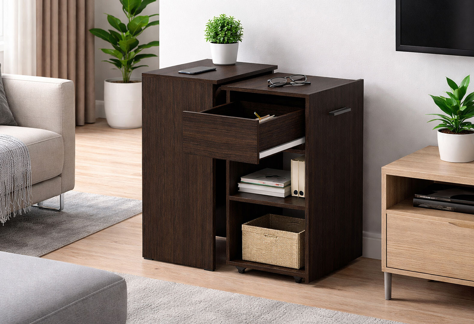 Стіл-тумба трансформер Knap Knap Hobana / Хобана Ш1 з 2 відкритими поличками та шухлядою, Венге