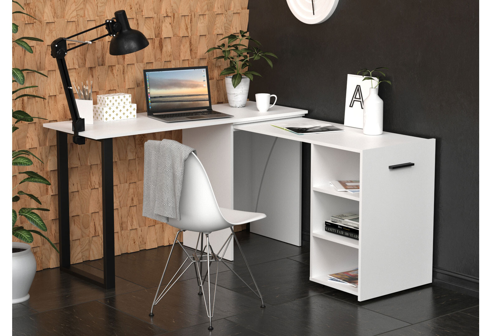 Зображення 8 - Стіл-трансформер Knap Knap Hobana+Jambo / Хобана+Джамбо з додатковою поворотною стільницею та полицями, Білий