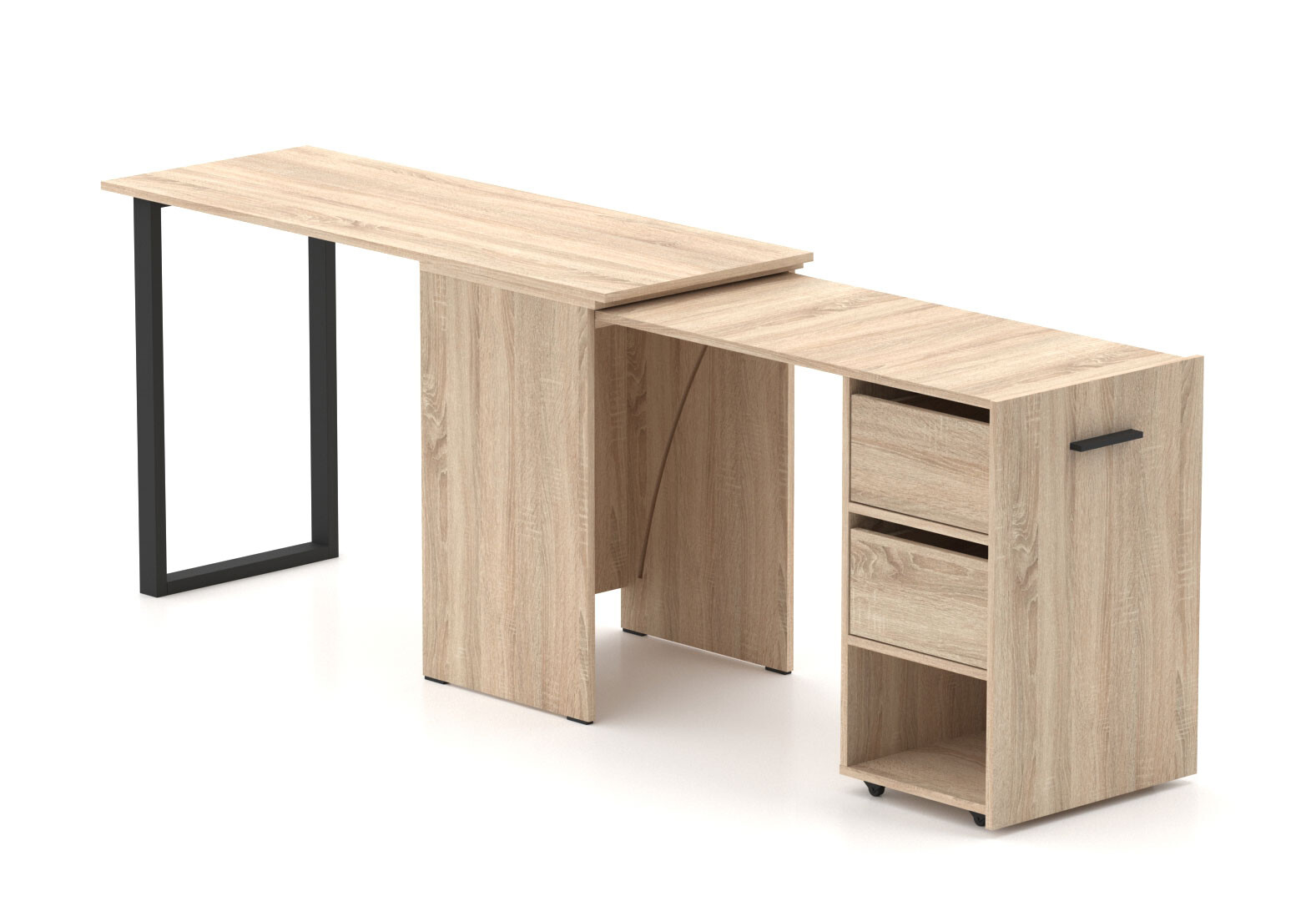 Стіл-трансформер Knap Knap Hobana+Jambo / Хобана+Джамбо Ш2 з додатковою поворотною стільницею, полицею та шухлядами, Дуб сонома
