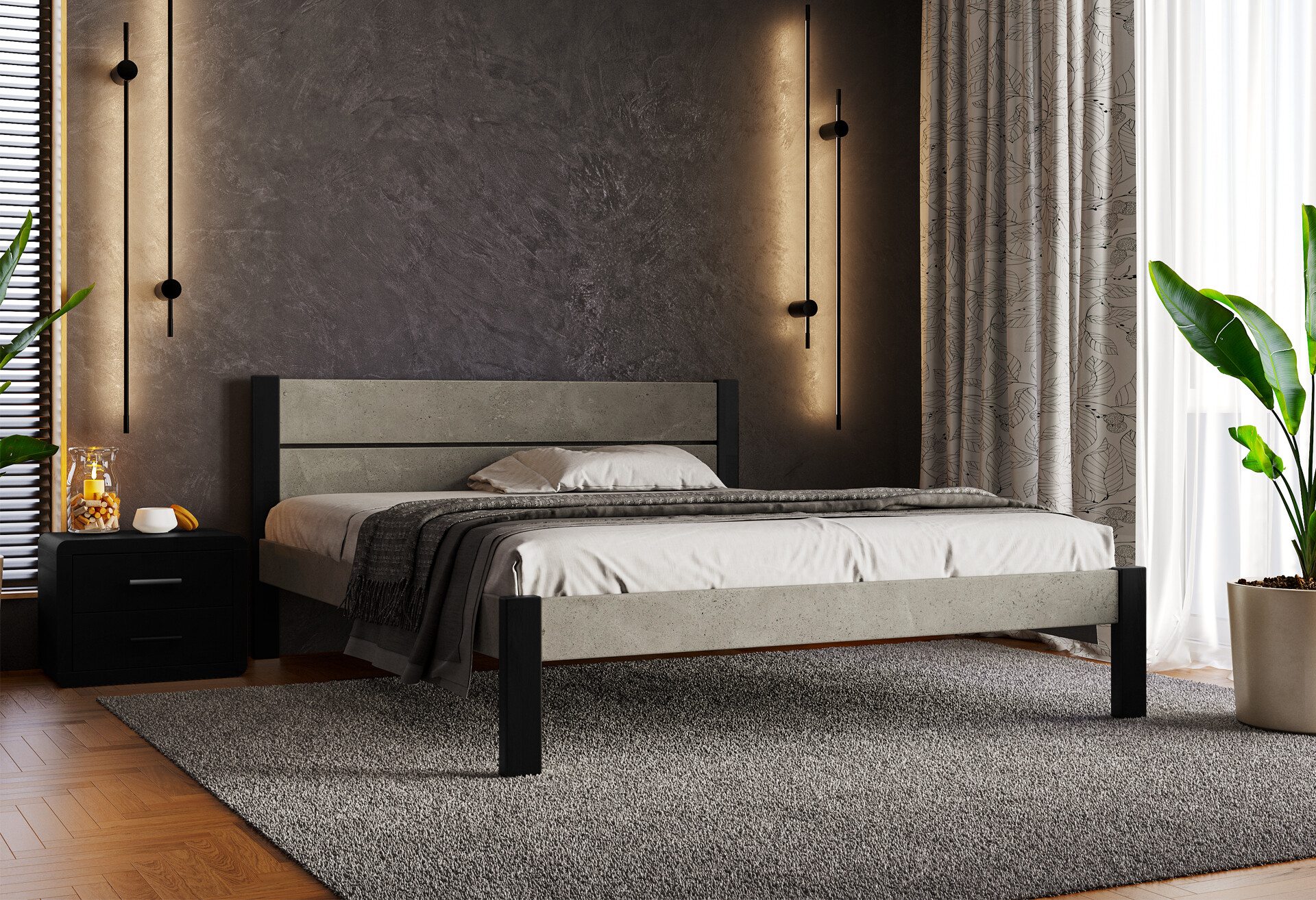 Ліжко Arbor Drev Лофт 2 (ДСП бетон) 160х200, сосна, венге магія
