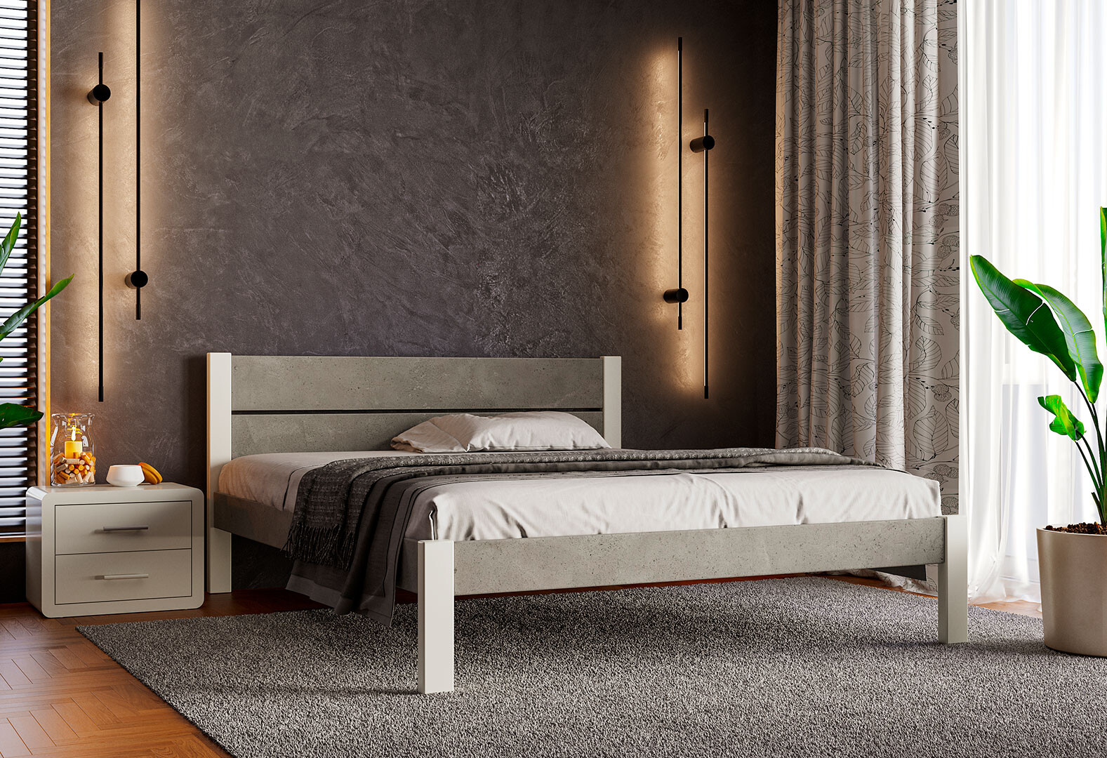 Ліжко Arbor Drev Лофт 2 (ДСП бетон) 180х190, бук, білий