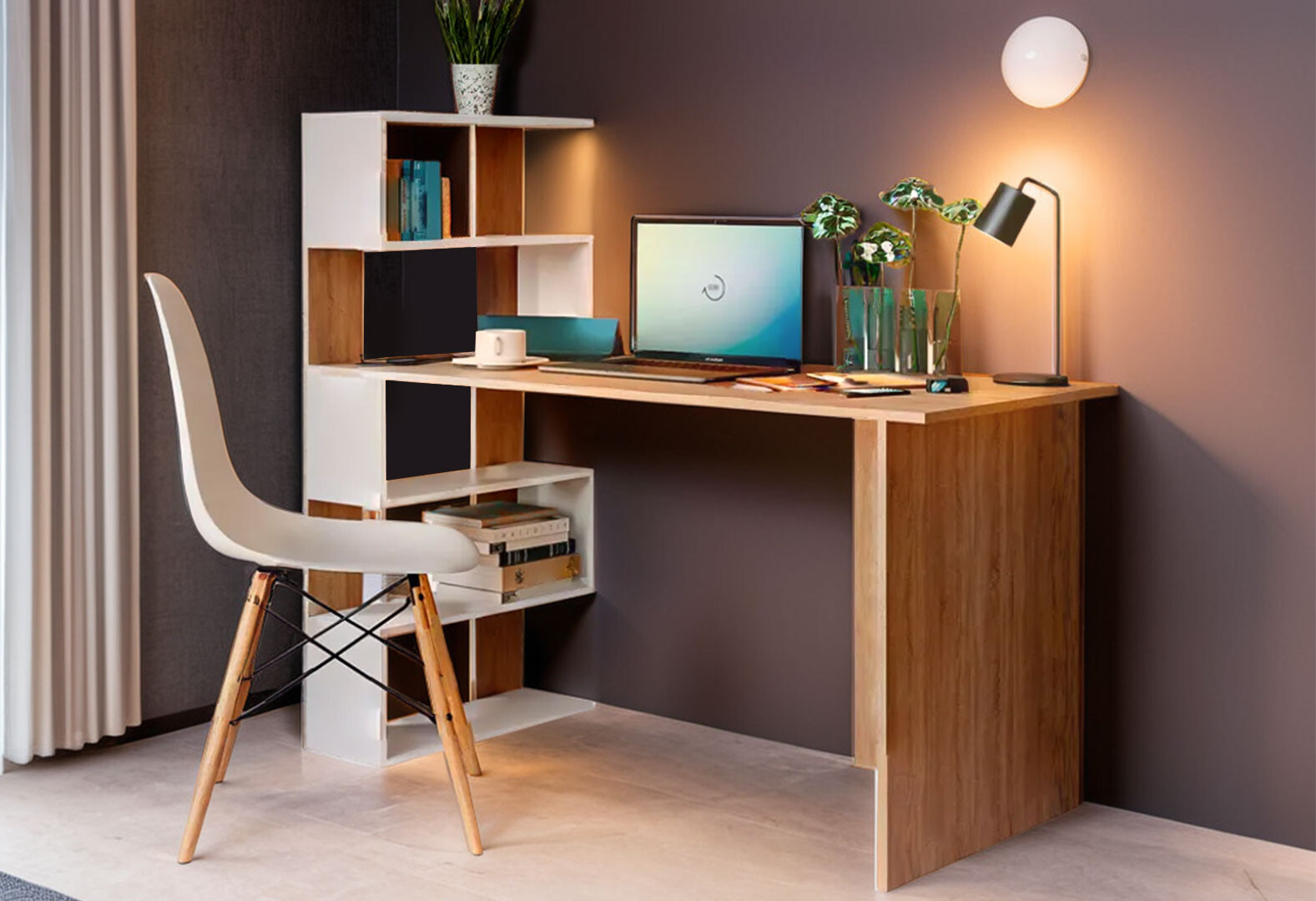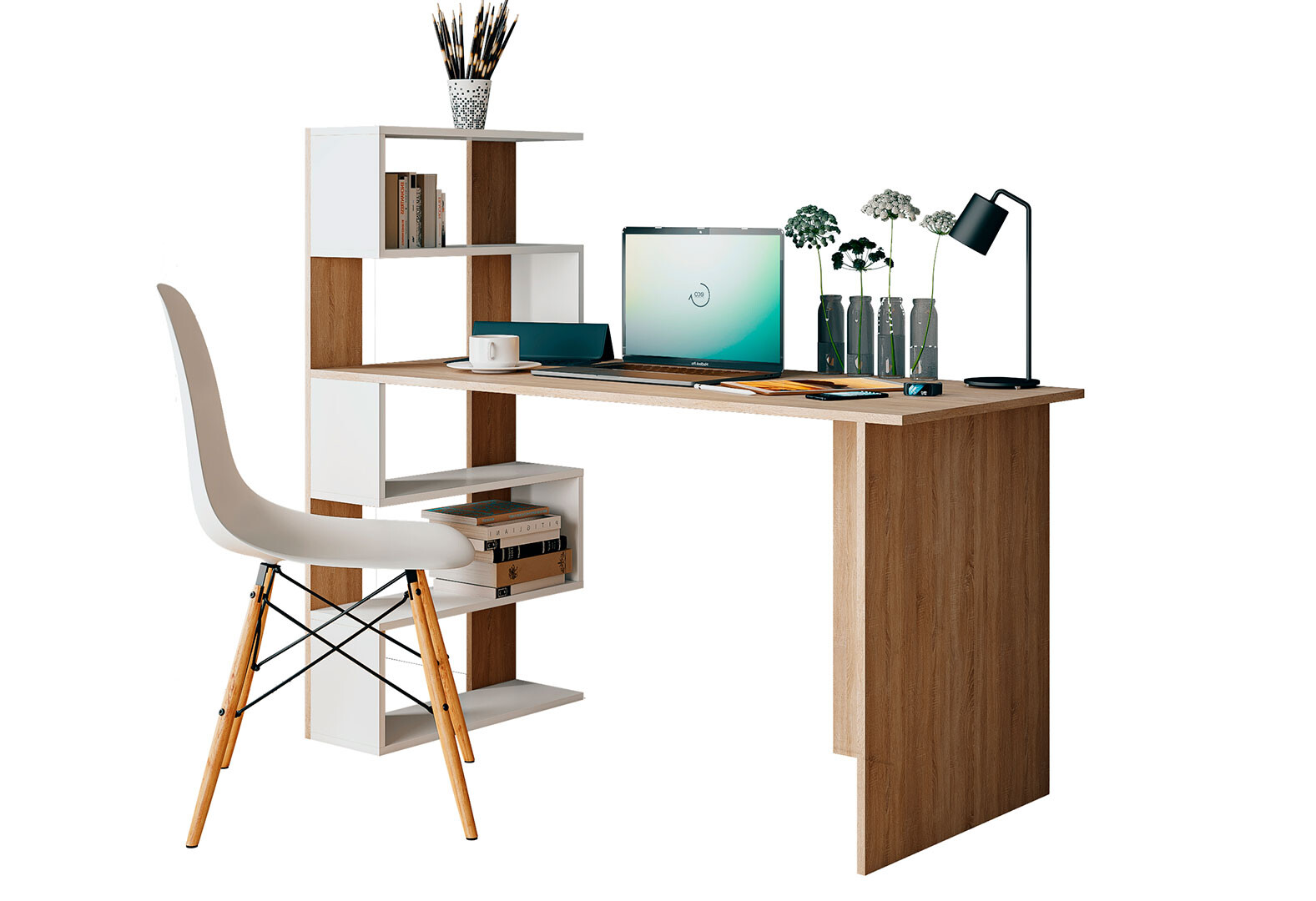 Стіл письмовий Moreli ST0024 142x60 см з боковими полицями зліва дуб сонома / білий
