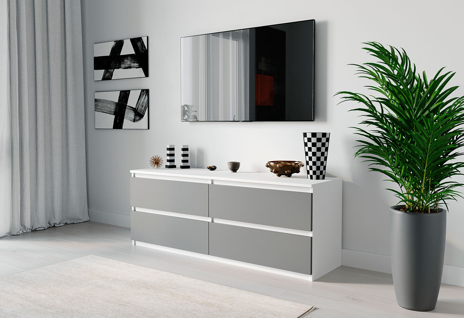 Тумба під ТВ Moreli Локі (Т223) з шухлядами 140 см білий / антрацит