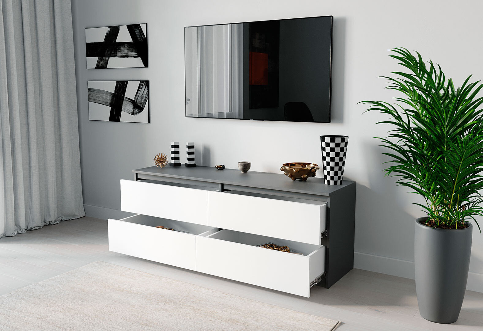 Тумба під ТВ Moreli Локі (Т223) з шухлядами 140 см антрацит / білий