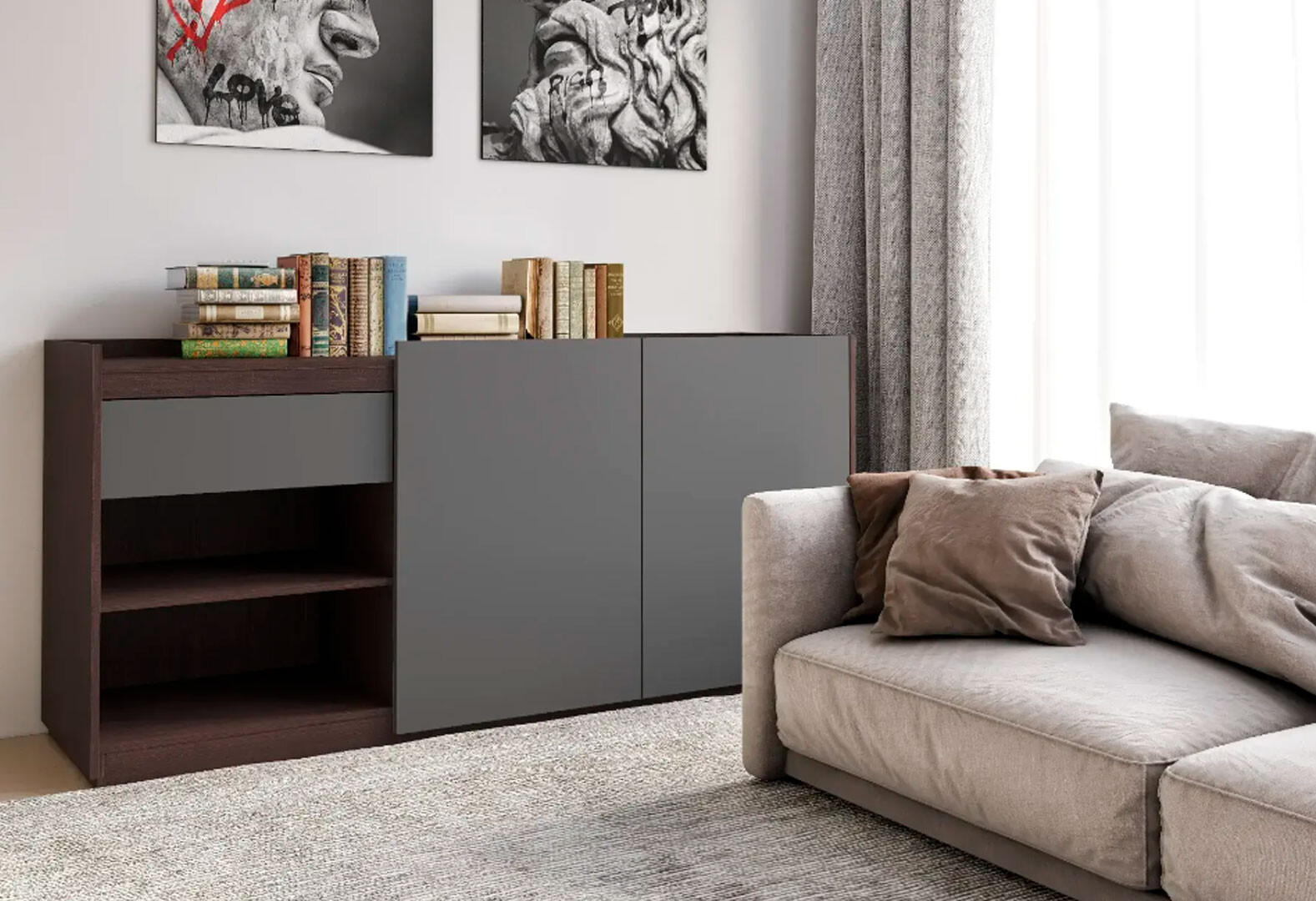 Комод Moreli RS-3 з дверцятами, полицями та шухлядою 184 см венге магія / антрацит