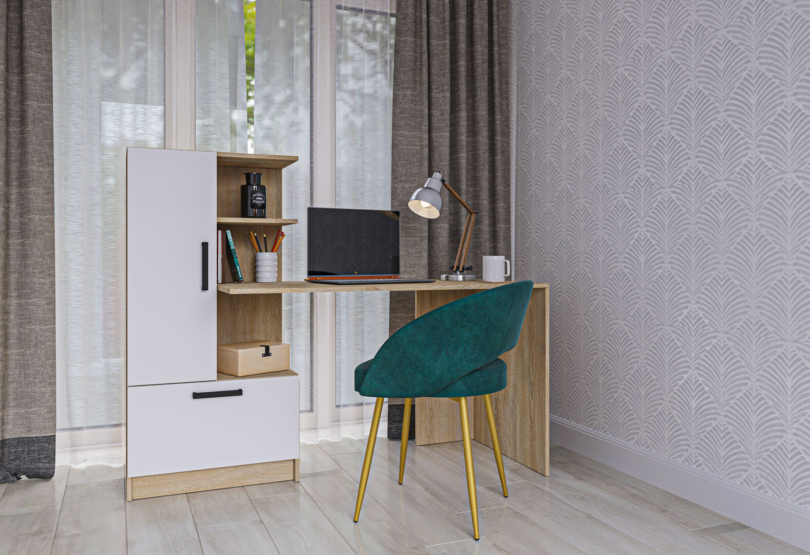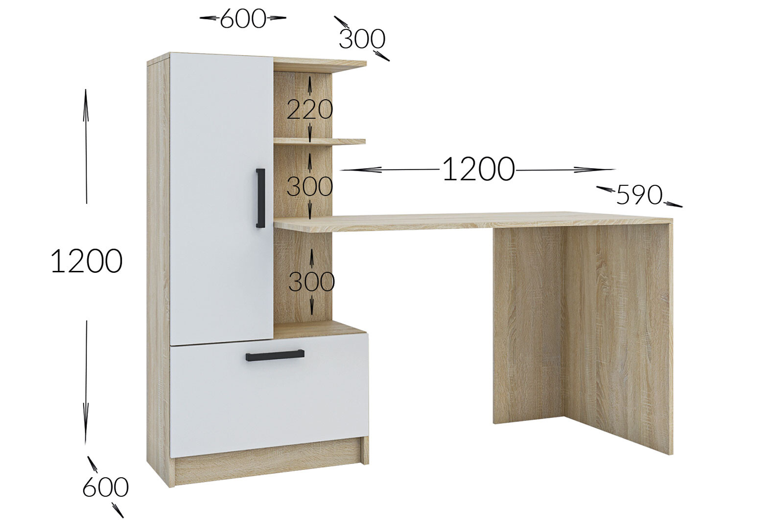 Стіл комп'ютерний Garant Стандарт 150x59 см зі стелажем Дуб сонома / Німфея альба, збірка ліва
