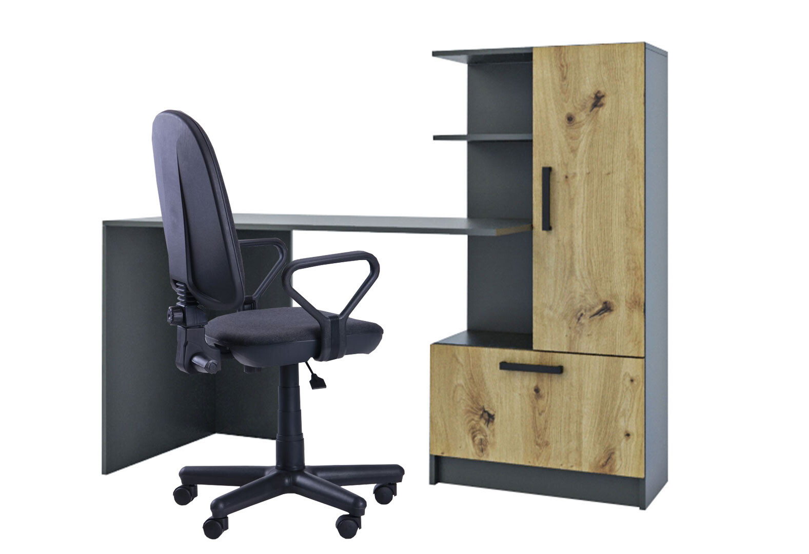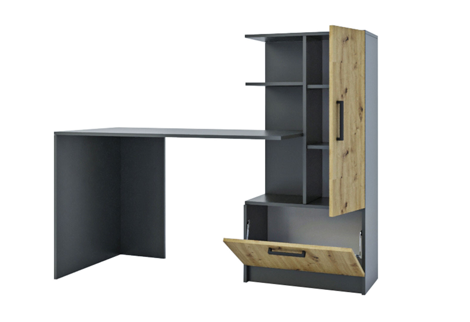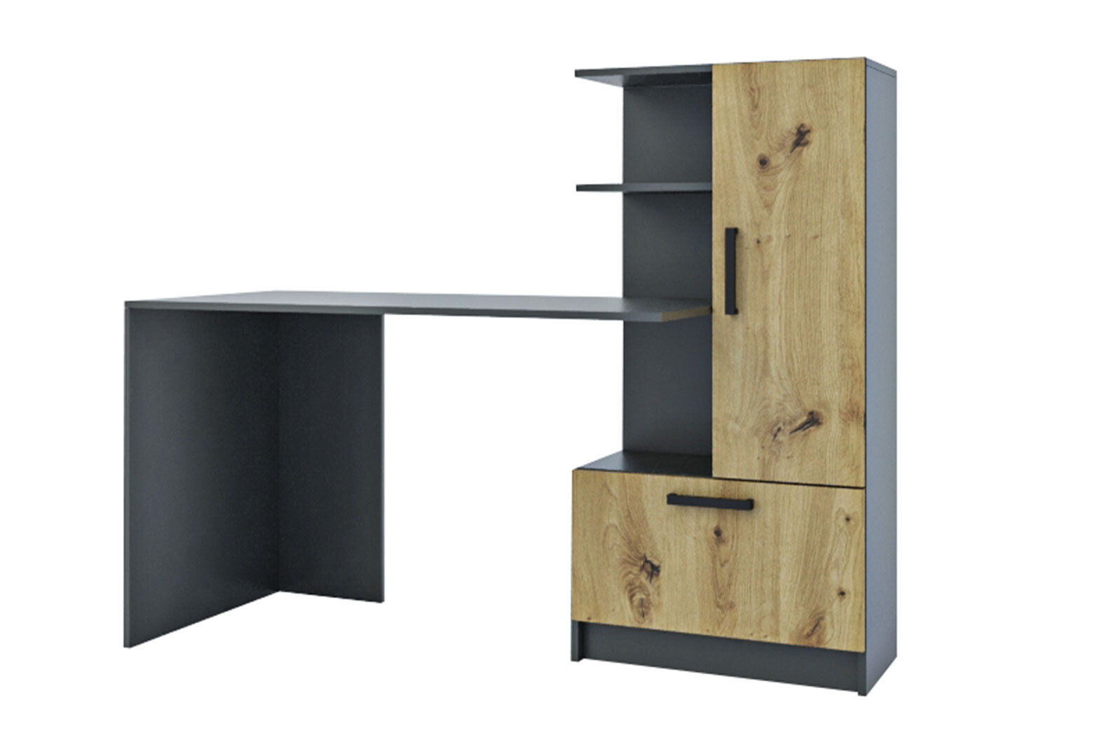 Стіл комп'ютерний Garant Стандарт 150x59 см зі стелажем Антрацит / Дуб артизан, збірка права