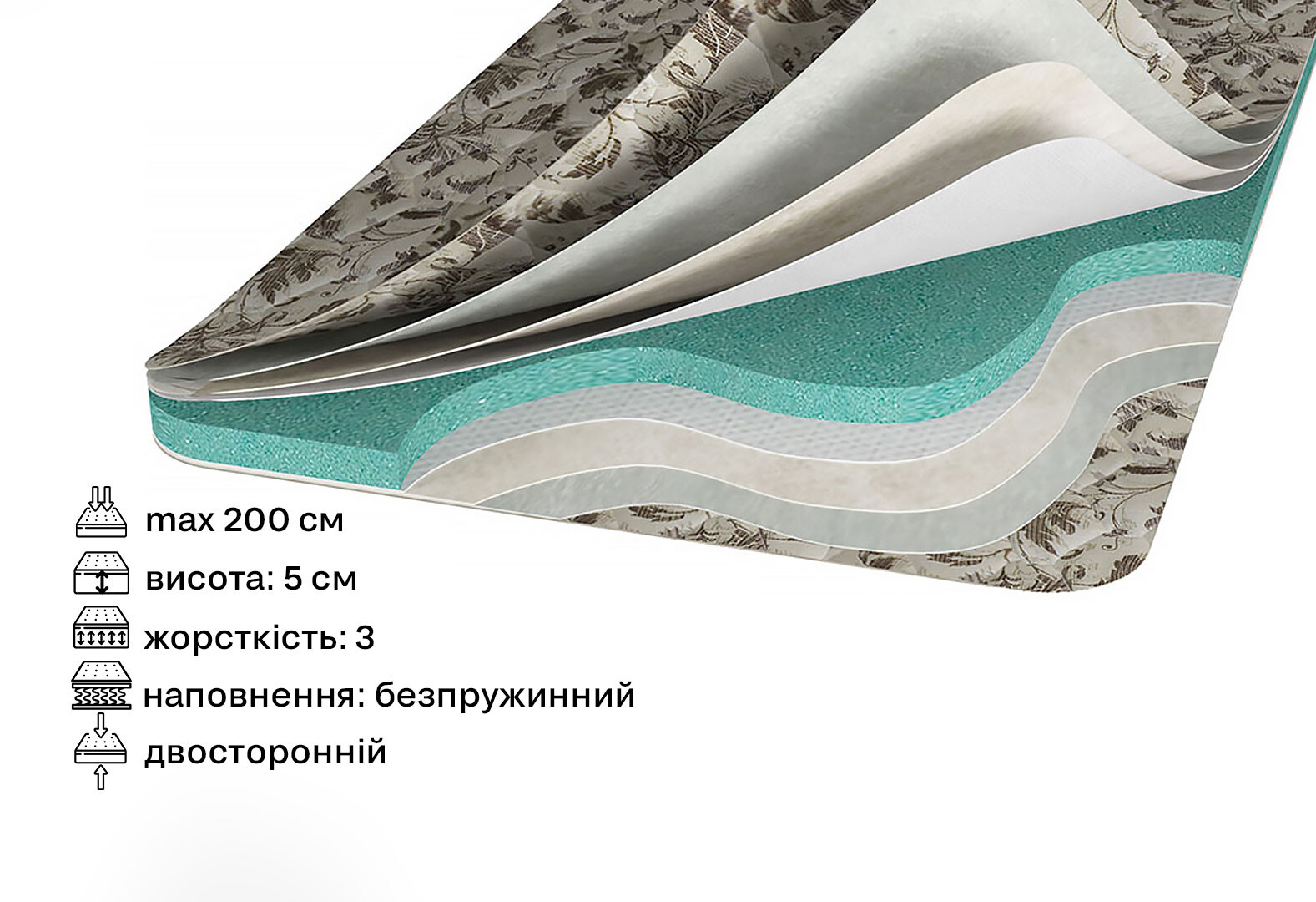 Матрац Світ Меблів Топпер-футон №1 категорія 3, 120х200, чохол із подвійного жаккарду