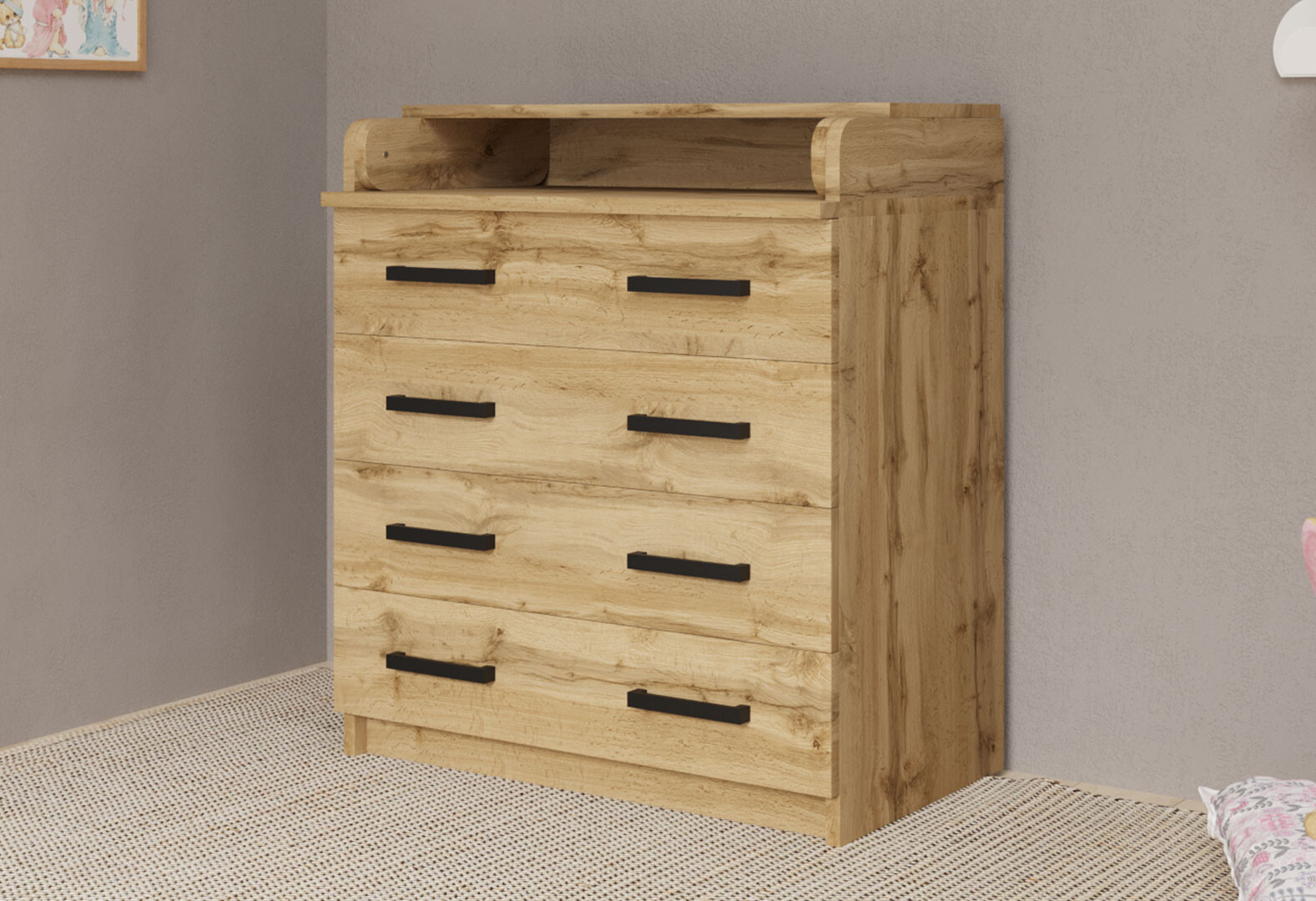 Комод MebelStar з 4 шухлядами та пеленальною надбудовою 80 см дуб тахо